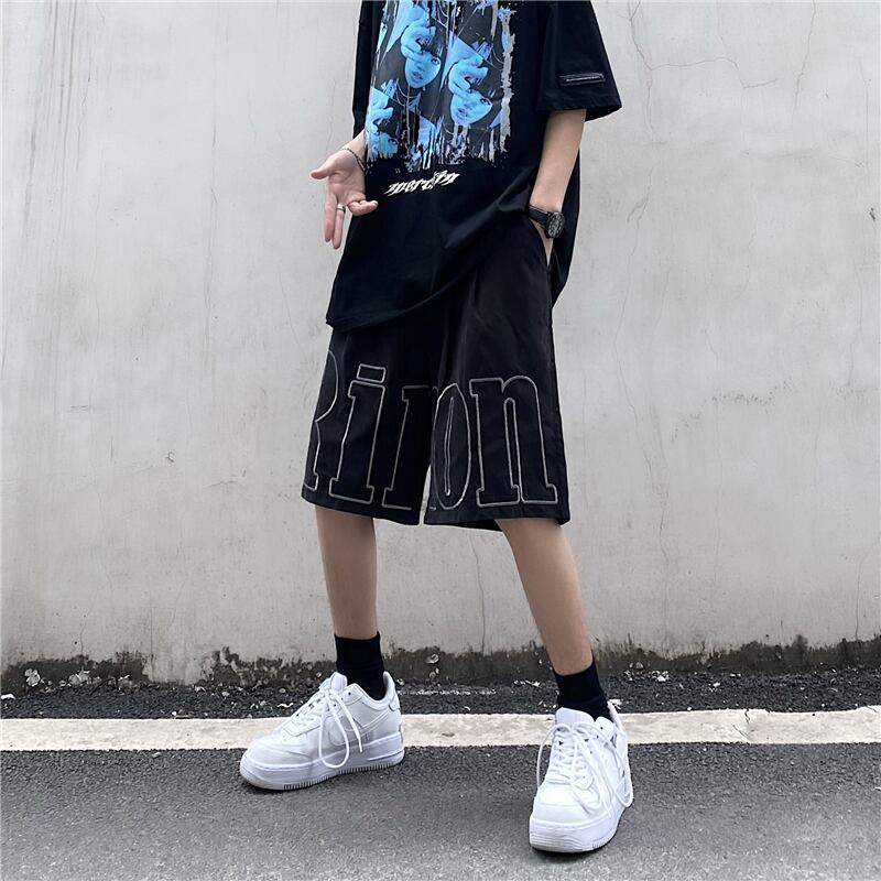 パンツ レディース夏服トレンドスタイル刺繍ブラックルーズショーツ 原宿 夏物 デーモン25885561284