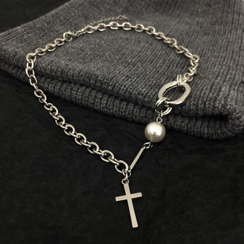 韓国ファッショントレンドクロスレディースネックレス パールチェーン レース 真珠 スタイル デーモン78648777859