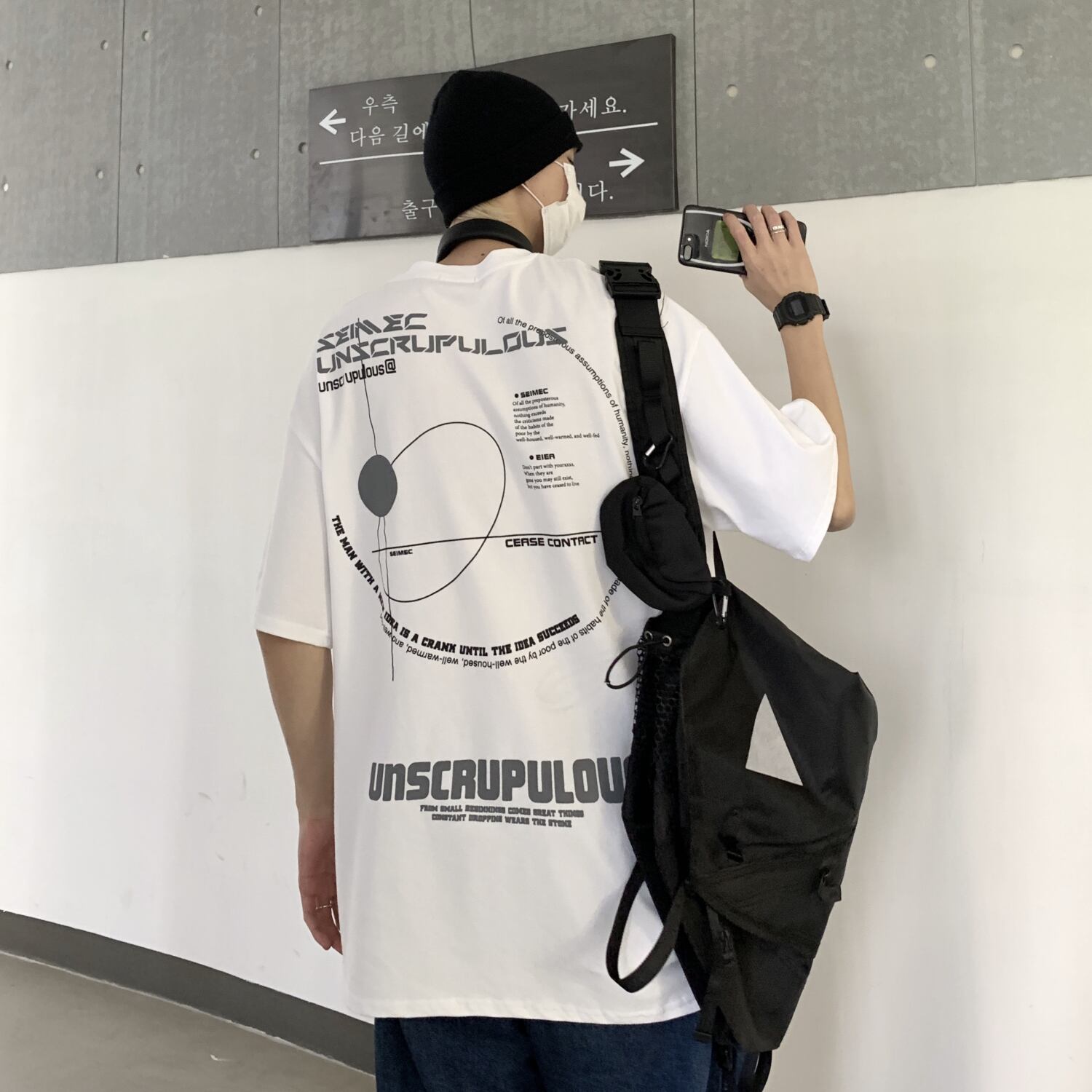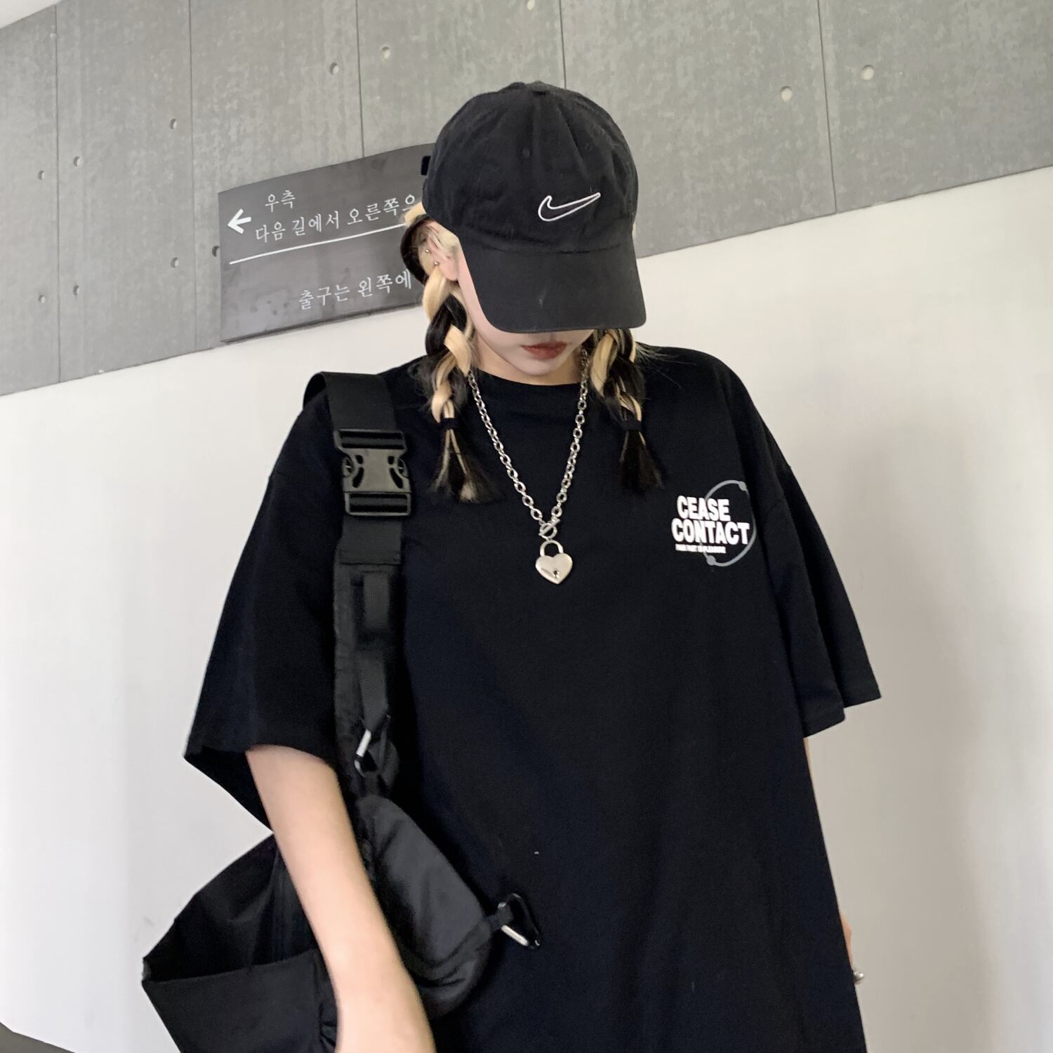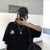 レディーススプリング韓国ファッショントレンドプリントブラックルーズTシャツトップス 春物 スタイル デーモン62383524198