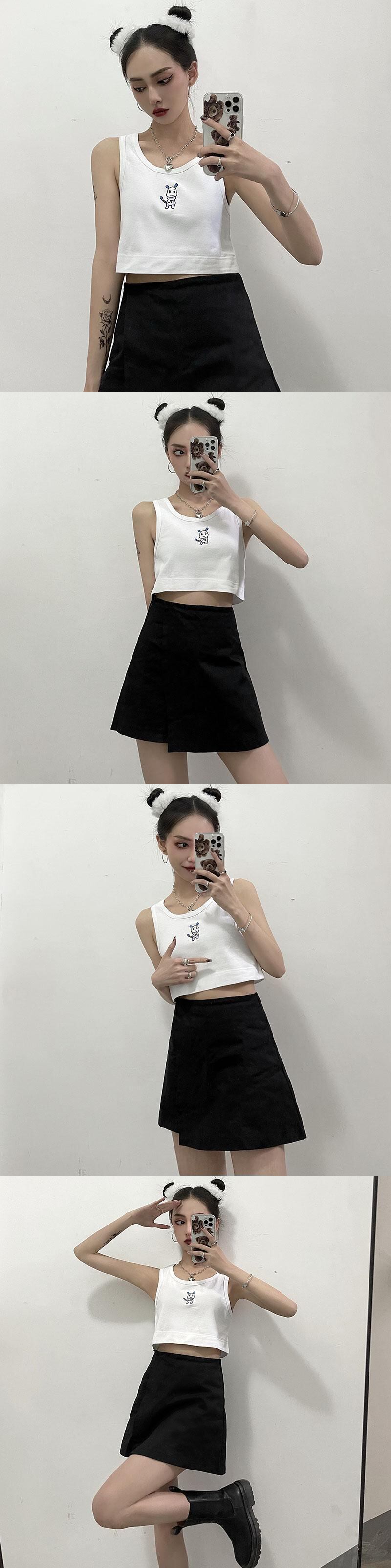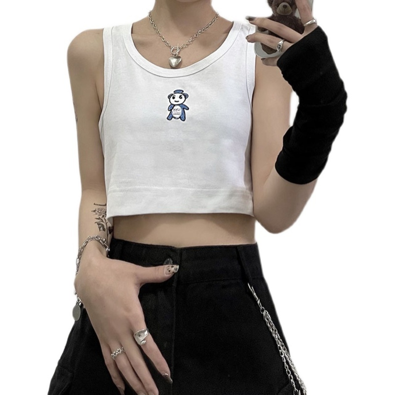 ノースリーブ夏服ホワイトショートジーンズ Tシャツトップス レッド コットン 刺繍 夏物 CHIL45599477385