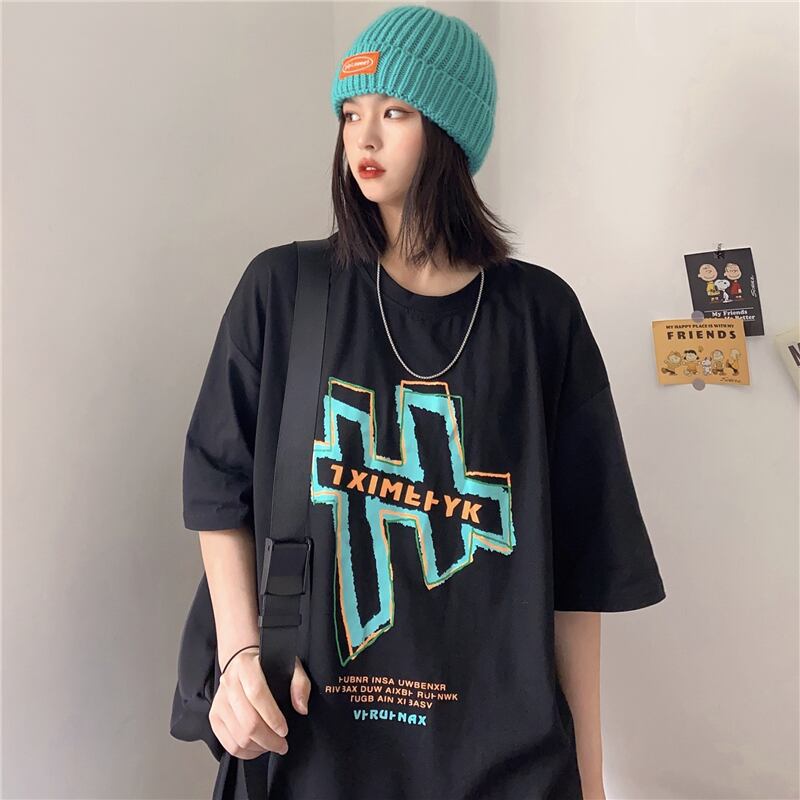 夏服Tシャツルーズラウンドネックトップス トレンド自然派プリント 大きめサイズ 夏物 Oネック CHIL78625024955