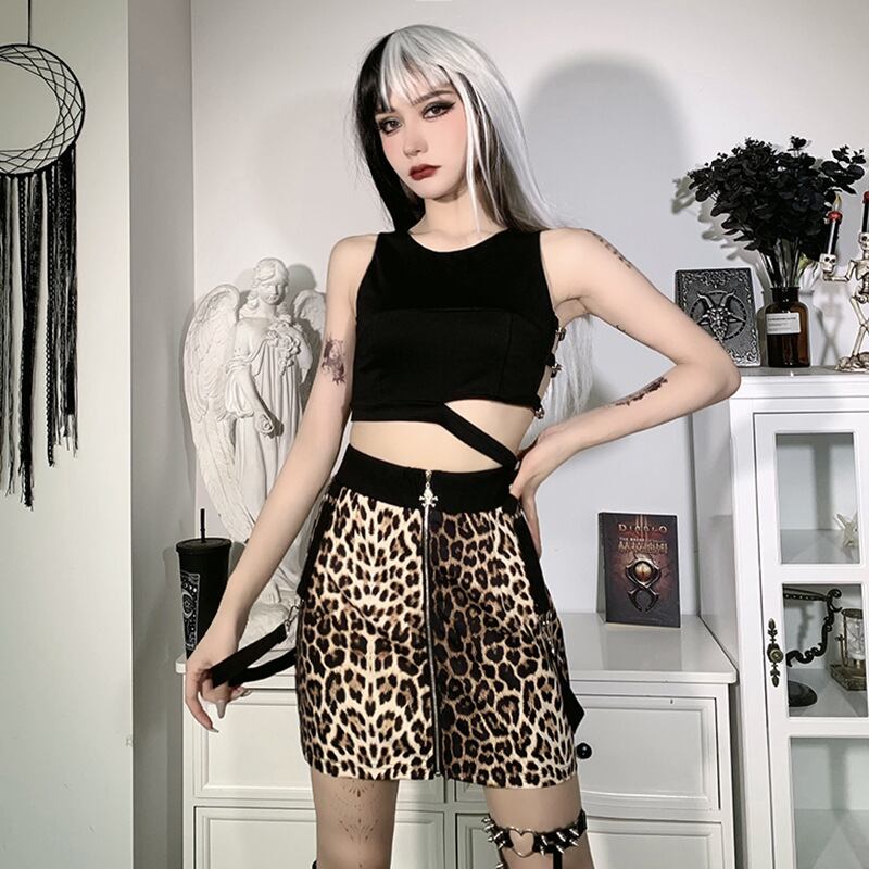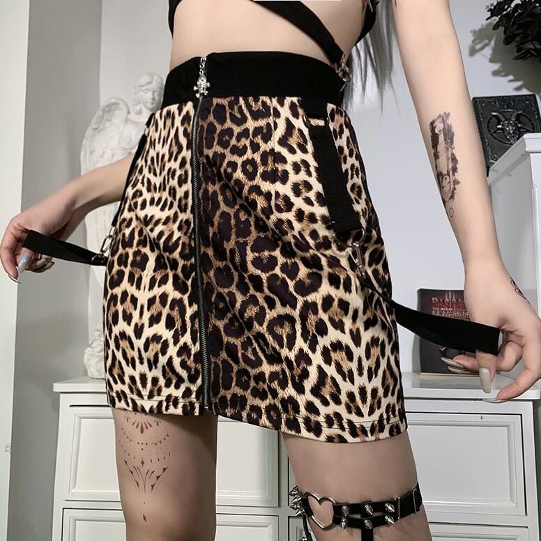 レオパードプリント柄ジッパースカート ハイウェストウェストレディース ヨーロピアン ウエスト YU99602003355