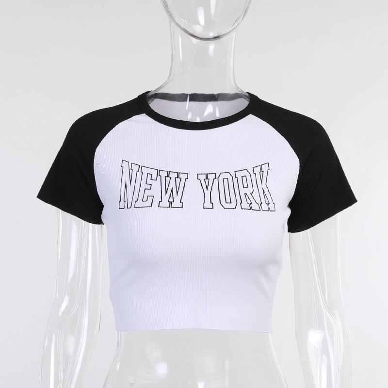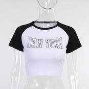 カラープリントラウンドネックトップス 夏服Tシャツレディース 夏物 Oネック ヨーロピアン YU56785833244