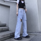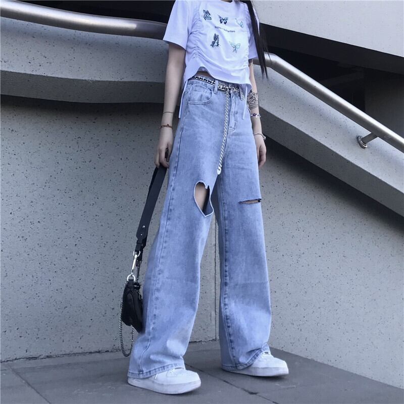ジーンズ レディース夏服トレンドワイドレッグハイウェストウェスト薄手ブルーパンツ ストリート 夏物 ワイドパンツ ボーイズ ウエスト デーモン13439736744