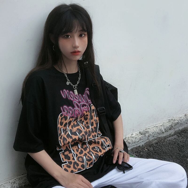 レオパードプリント柄Tシャツメンズレディース夏服ルーズ韓国ファッショントレンドゆったりトップス 夏物 スタイル CHIL98563729472
