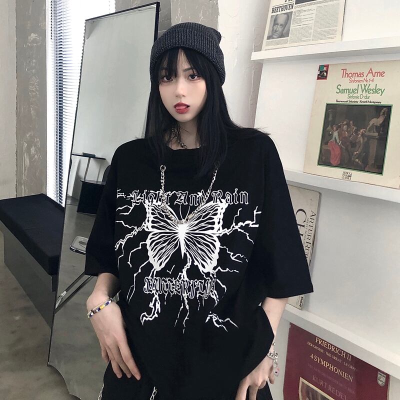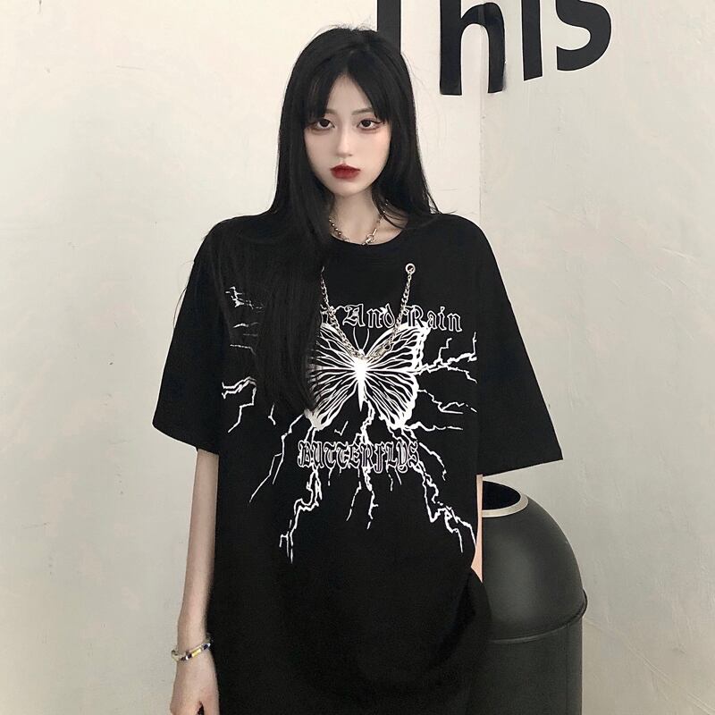 夏服スタイルチェーン Butterflyデザイン プリント柄トレンド韓国ファッションルーズTシャツレディース ストリート 原宿 夏物 CHIL6774460368