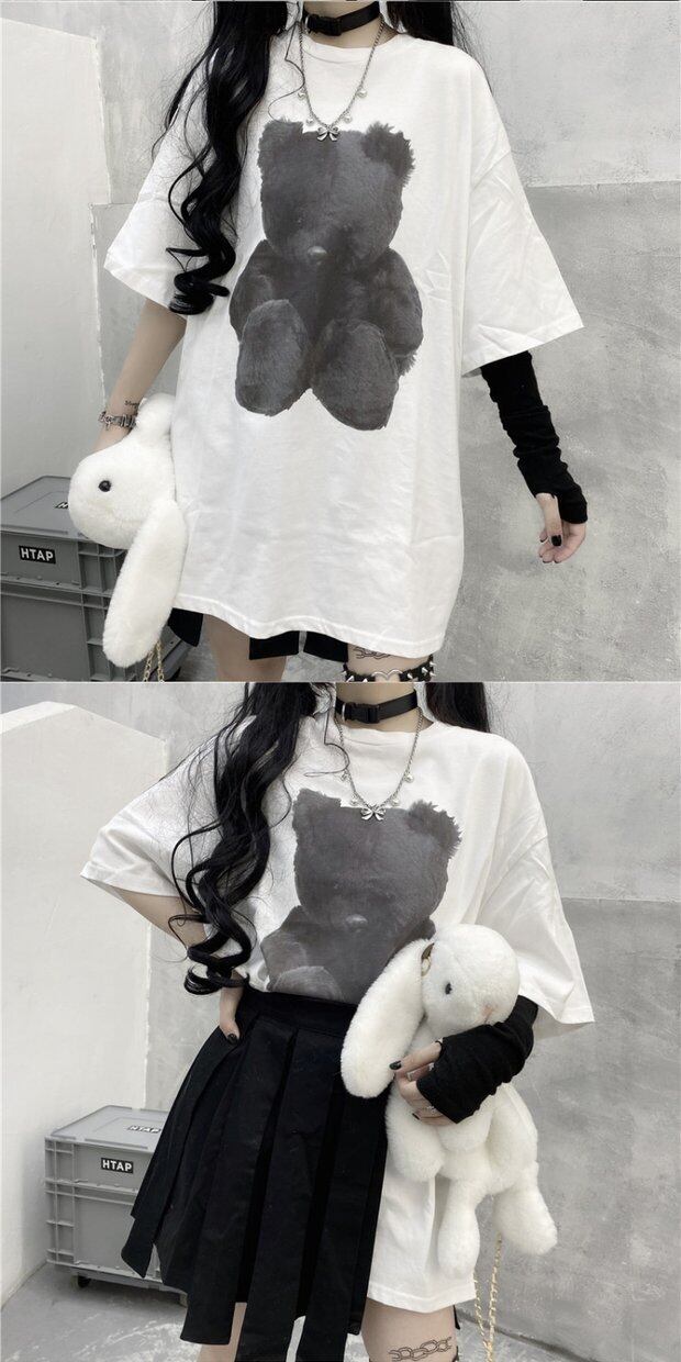 ホワイトTシャツシャツ レディース夏服韓国ファッショントレンドスタンダードダークプリント柄ルーズゆったりトップス レトロ 夏物 スタイル デーモン86712766670