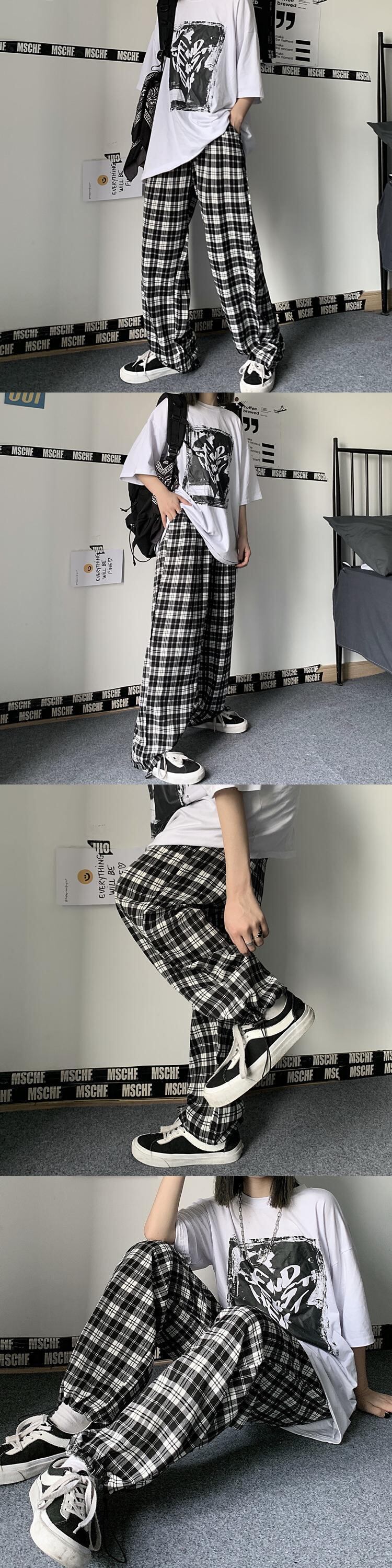 レギンス レディース夏服トレンドスタンダードギャザー格子柄パンツ ルーズワイドレッグ レトロ 夏物 ワイドパンツ ボーイズ デーモン79404942102