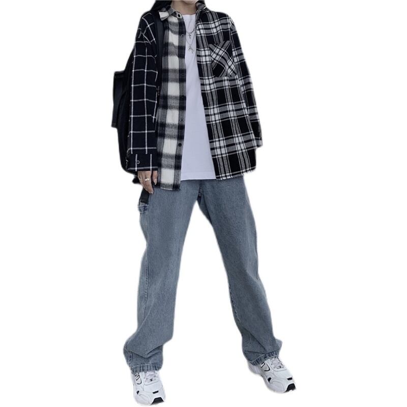 スプリングスタンダードスタイルシャツ ジャケット レディース ロング レトロ 原宿 春物 ステッチ ボーイズ 長袖 ミドル丈 CHIL84256453171