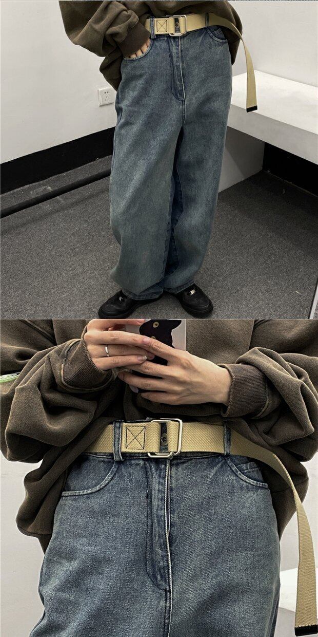 ベルト レディース韓国ファッショントレンドスタンダードダブルリング バックルブラックパンツ カジュアル レトロ ハーネス 指輪 デーモン74853681418
