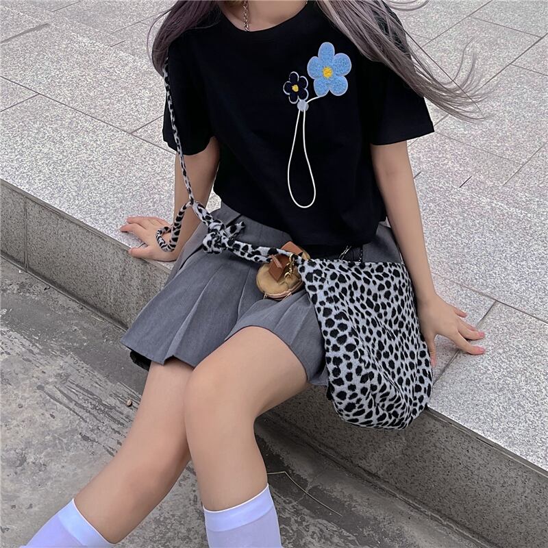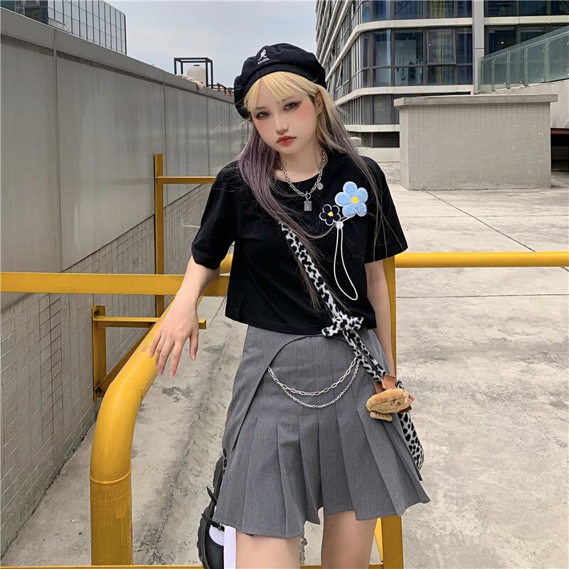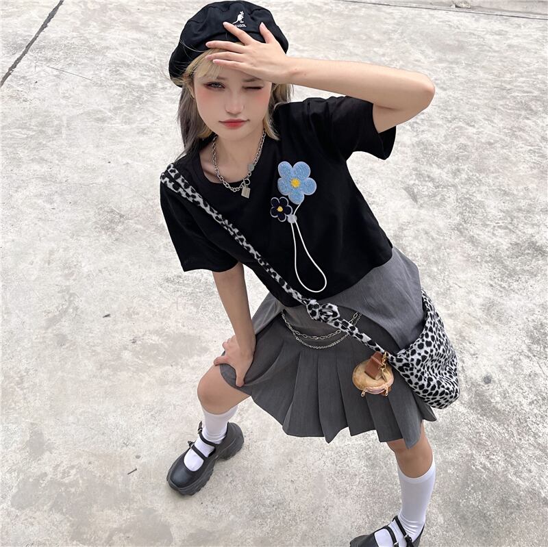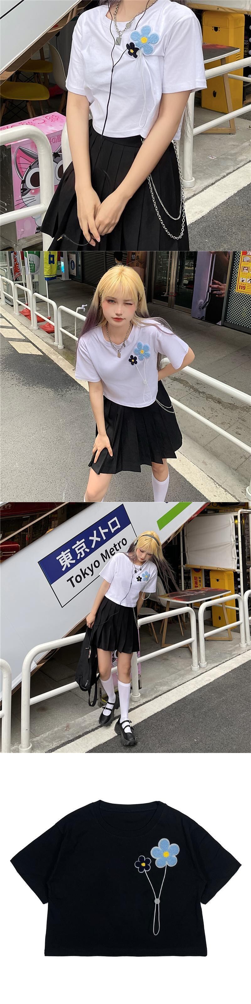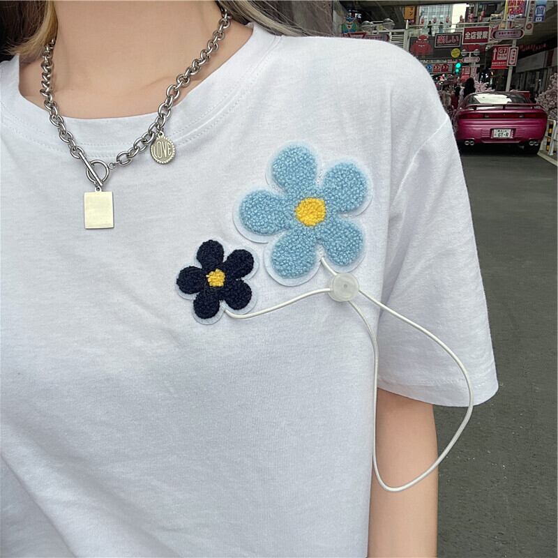 ショートTシャツ夏服韓国ファッショントレンドFlowerデザイン ホワイトルーズトップス 夏物 フラワーデザイン ボーイズ デーモン33501670242
