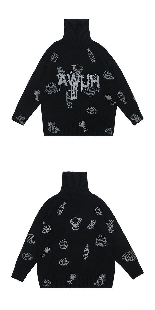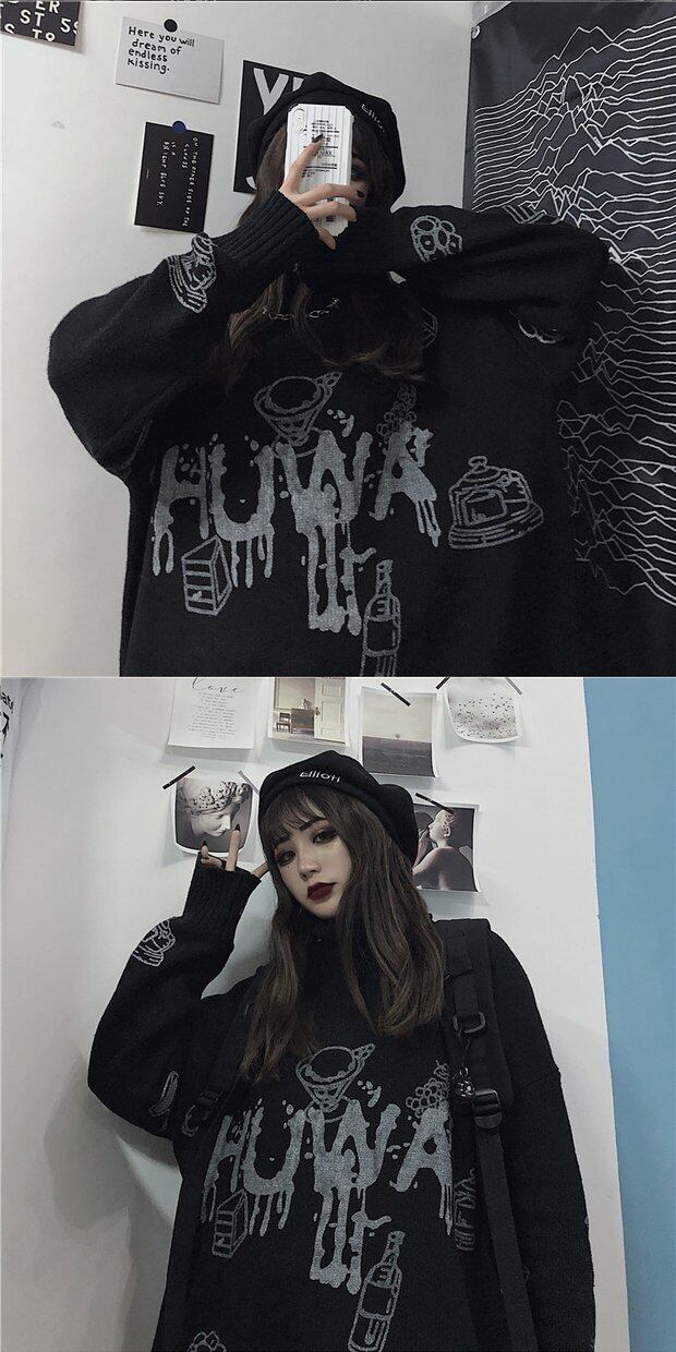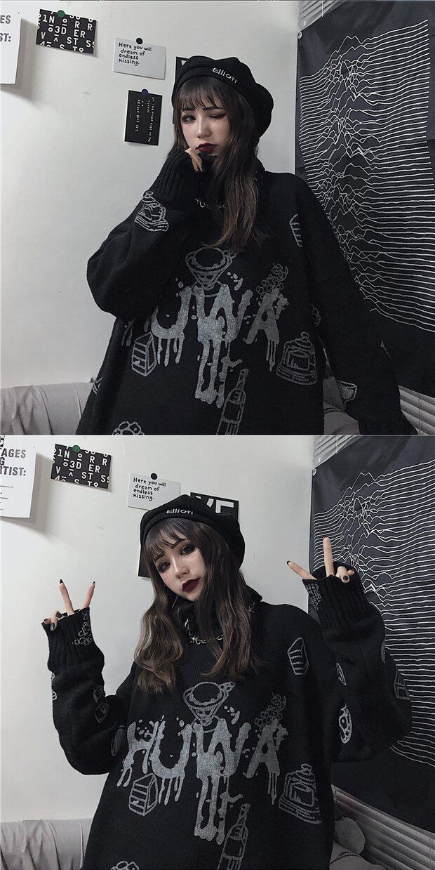 セーター 秋物ウィンター韓国ファッショントレンドスタイルプリントルーズプルオーバー ニットコート 原宿 オータム 冬物 デーモン20461122912