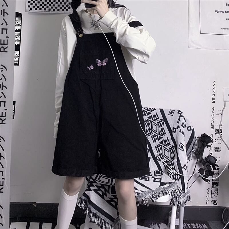 レディース夏服トレンドButterflyデザイン 刺繍ブラックショートルーズ薄手カジュアルパンツ 原宿 夏物 ボーイズ デーモン89019114055