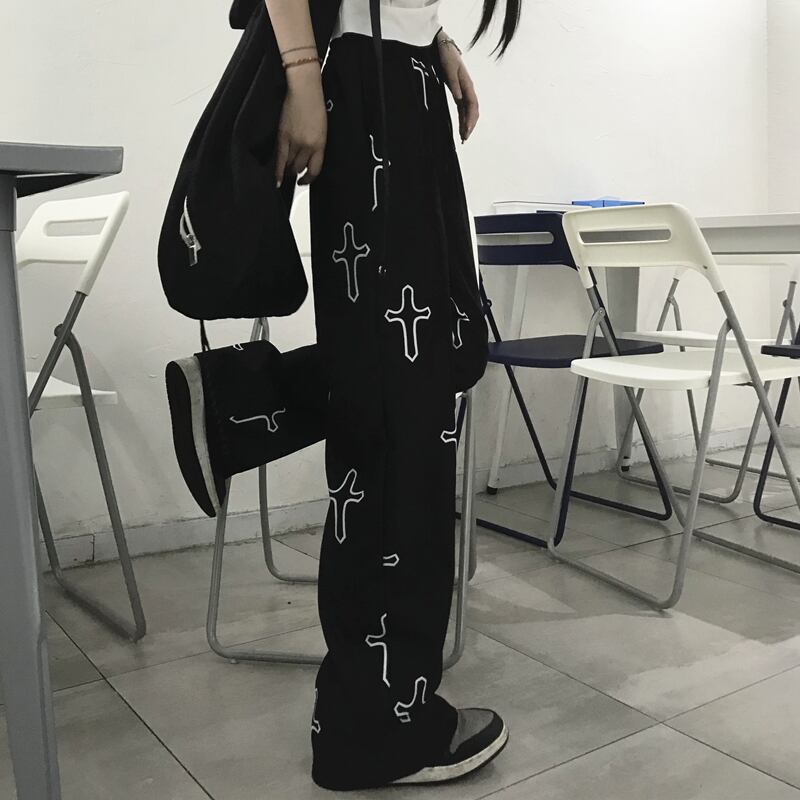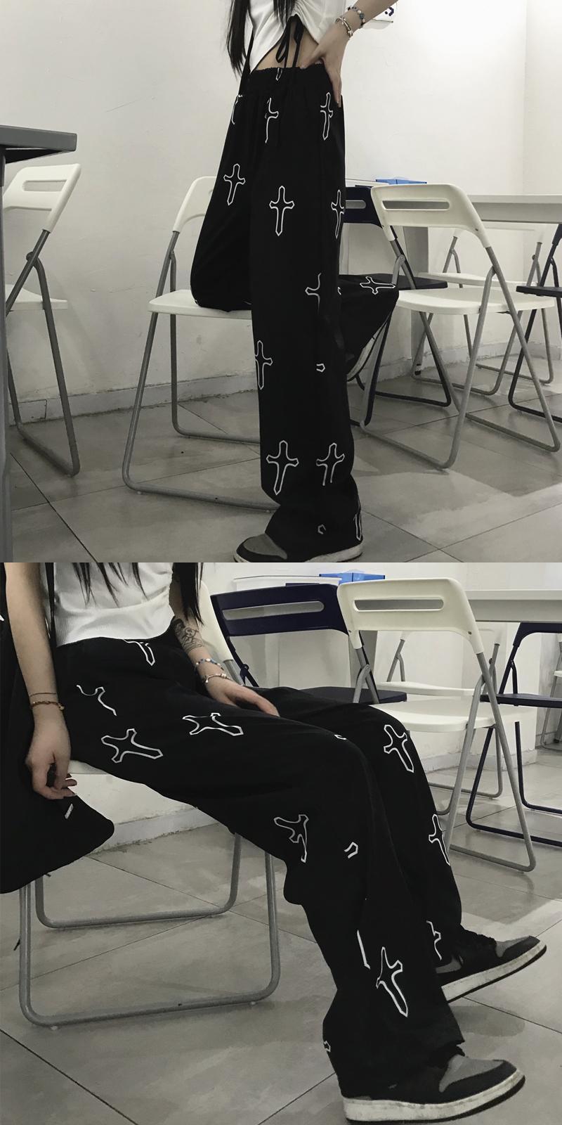パンツ 夏服トレンドダークプリントルーズハイウェスト薄手カジュアル 夏物 ウエスト デーモン7953124595