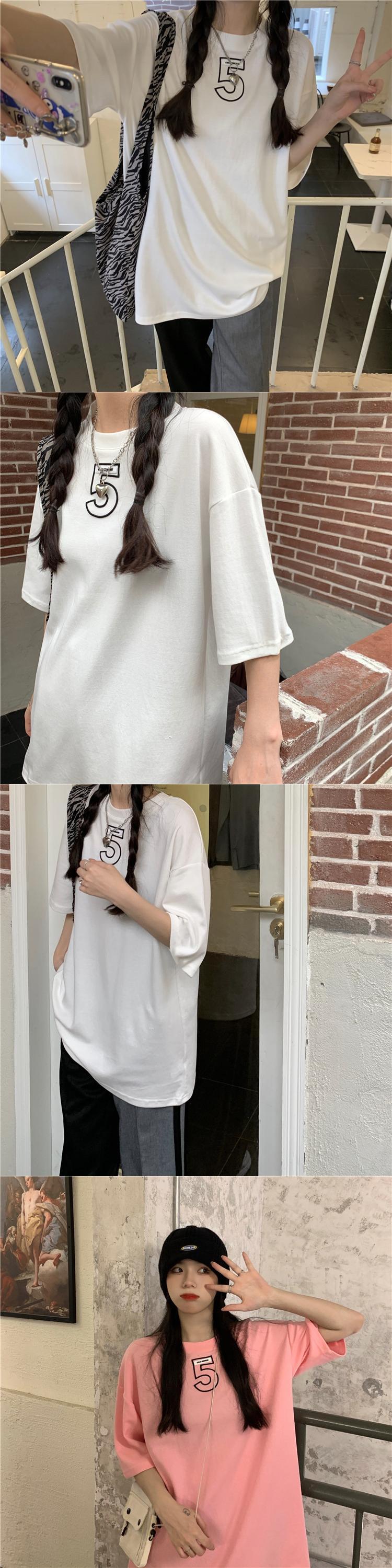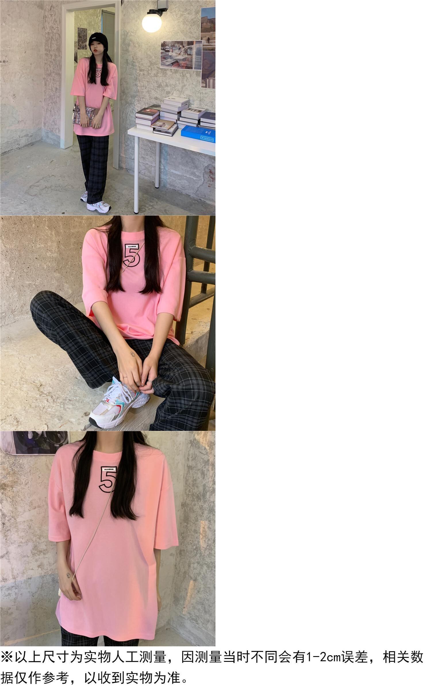プリント柄ルーズラウンドネックTシャツ Oネック CHIL50557750918