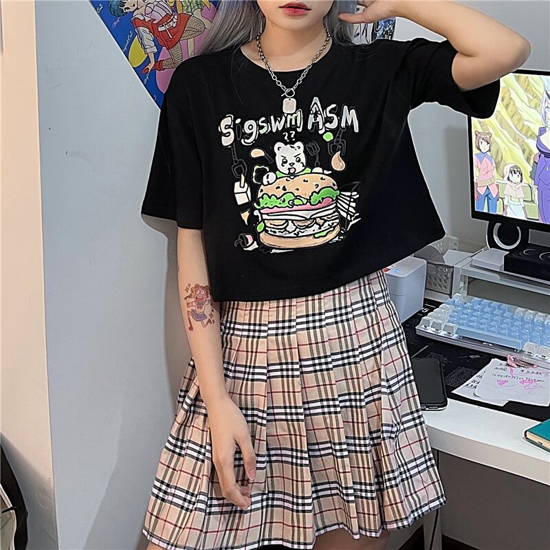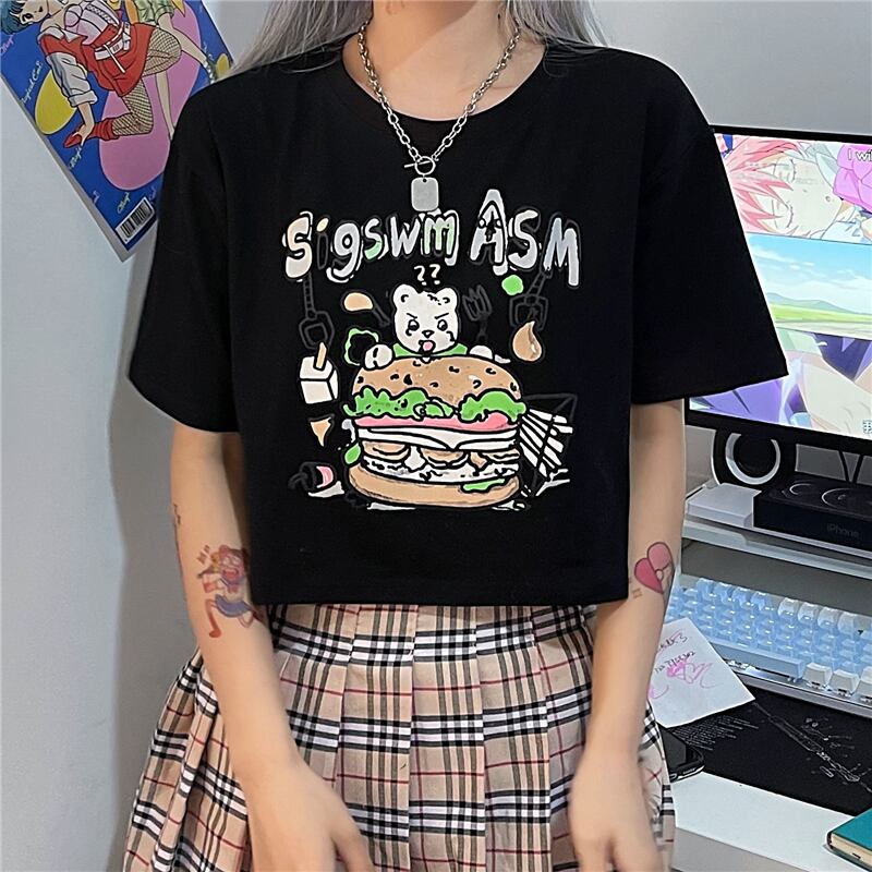 Tシャツレディース夏服韓国ファッショントレンドプリントラウンドネックルーズショートトップス 半袖スリーブ ハーフスリーブ 夏物 Oネック スタイル デーモン78571192411