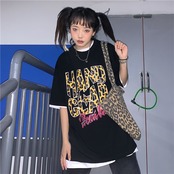 トレンドスタンダードレオパードプリント柄プリントルーズTシャツメンズレディース レトロ 原宿 CHIL79214415397