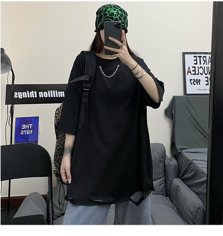 スタイルTシャツレディース夏服韓国ファッショントレンドダークチェーン ルーズトップス 原宿 夏物 ボーイズ デーモン89670800248