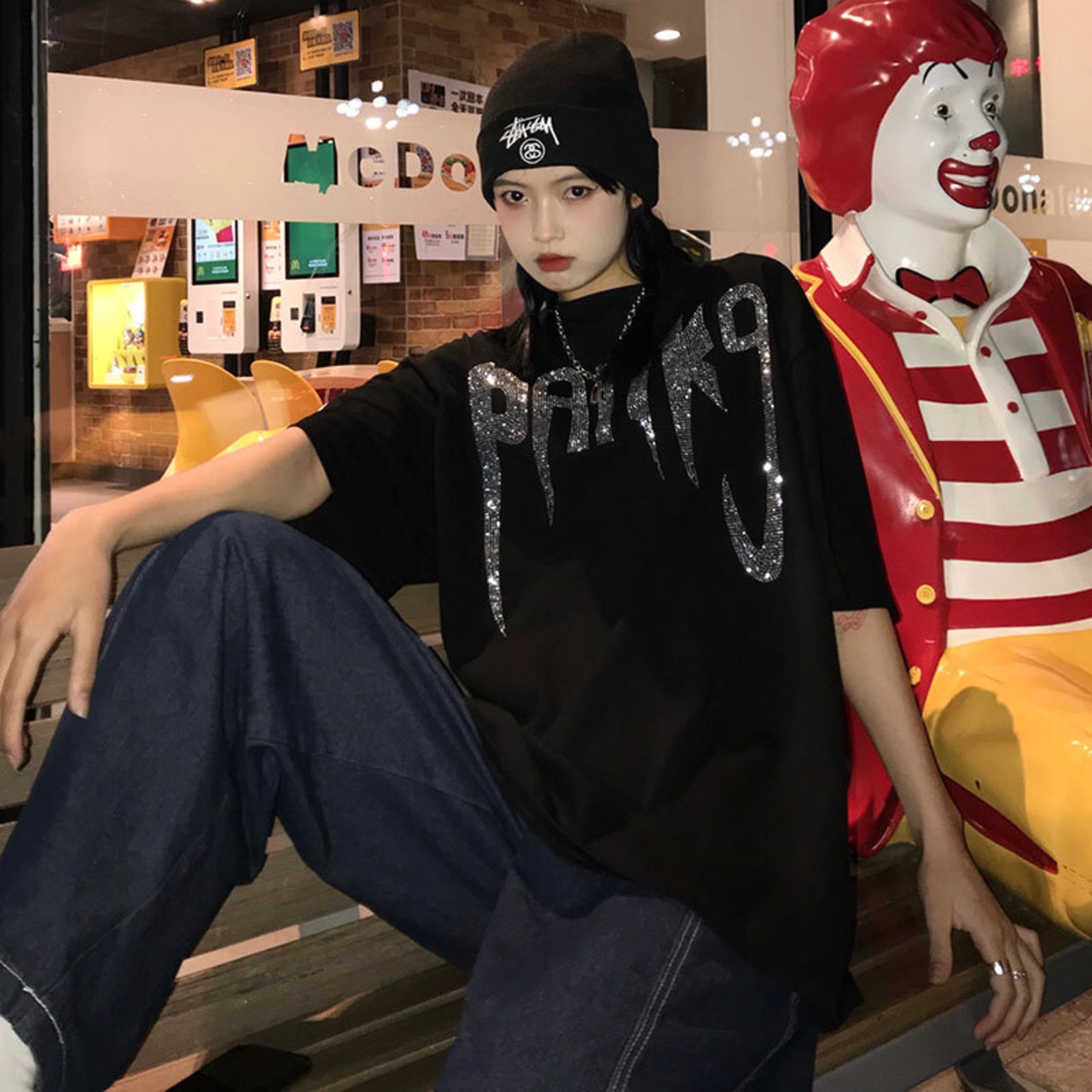 夏服韓国ファッショントレンドブラックルーズトップス Tシャツレディース 夏物 スタイル CHIL89235193836