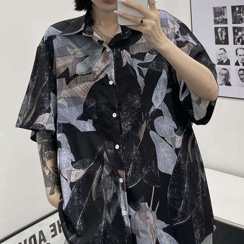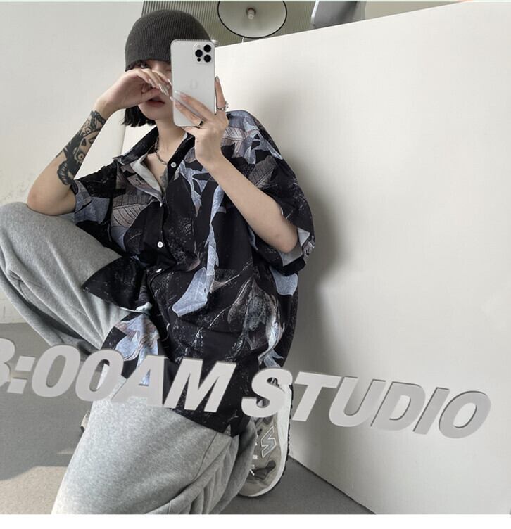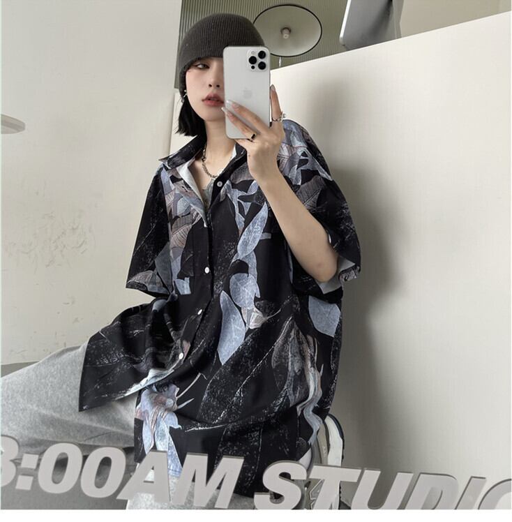 夏服シャツ レディースメンズルーズスタンダードスタイルプリント レトロ 夏物 ボーイズ CHIL44284870064