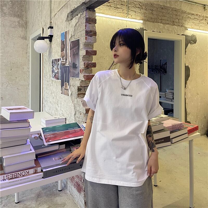 Tシャツレディース夏服韓国ファッショントレンドスタンダードソリッド カラープリントルーズトップス レトロ 夏物 ソリッドカラー スタイル デーモン57201993458