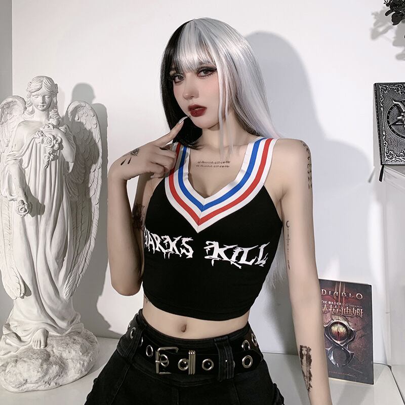 ダークカラースリムVネック夏服 ストリート 夏物 ヨーロピアン YU49465139528