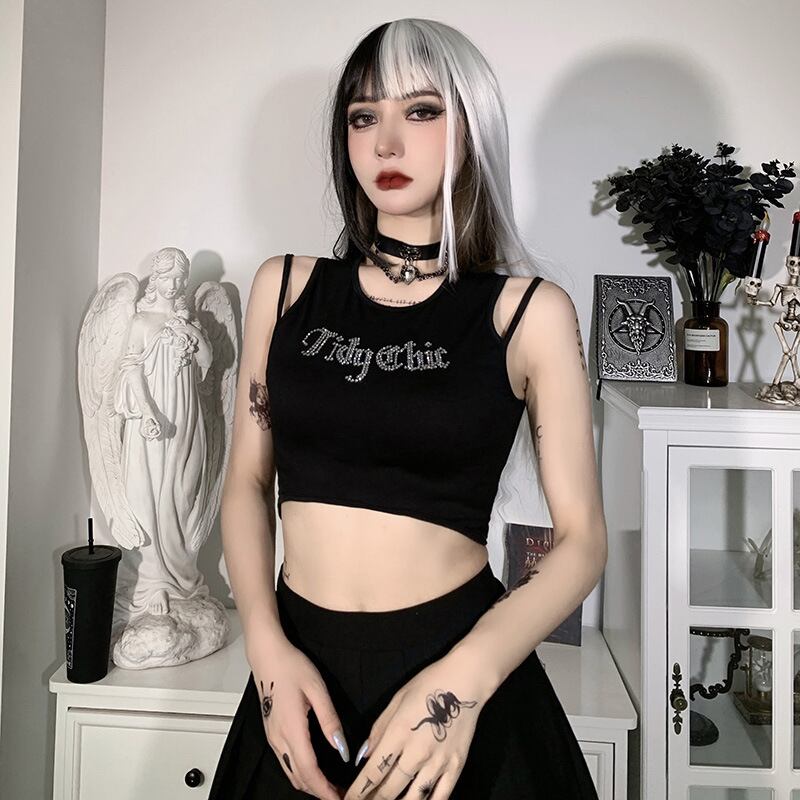ダークダブルラインストーントップス トレンド夏服 ストリート 夏物 ヨーロピアン YU41944834971