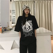 夏服韓国ファッショントレンドダークプリントルーズラウンドネック半袖スリーブTシャツメンズレディース ショート ハーフスリーブ 夏物 Oネック スタイル CHIL98203120470
