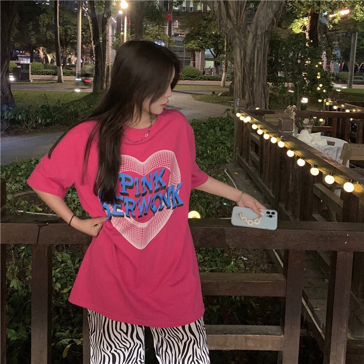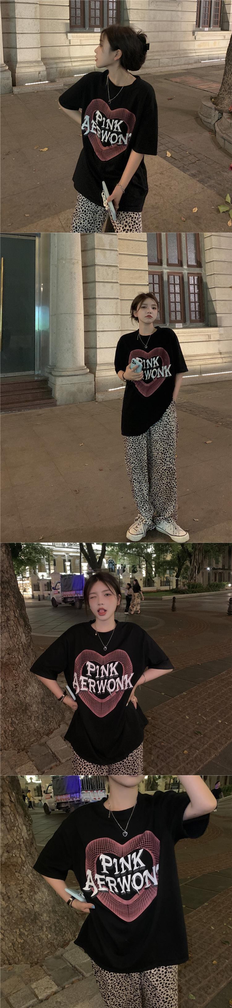 スタイルTシャツレディース夏服韓国ファッショントレンドプリントルーズトップス 原宿 夏物 ボーイズ デーモン18634860131