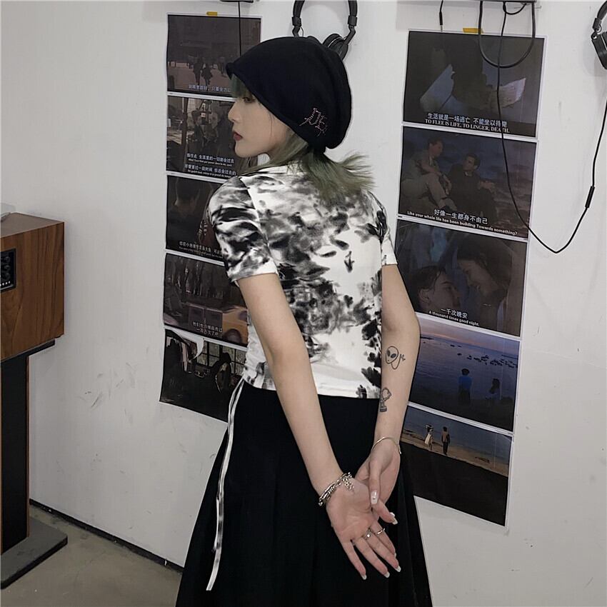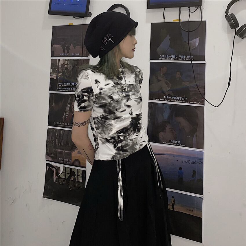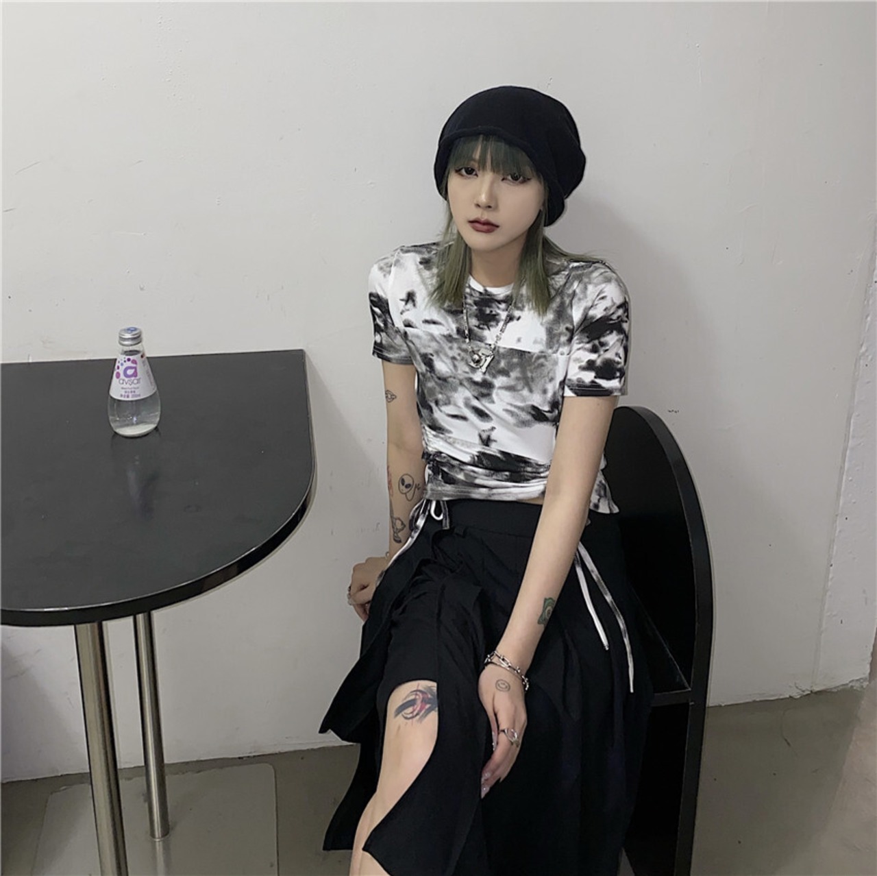スタイルTシャツレディース夏服韓国ファッショントレンドギャザースリムトップス 原宿 夏物 デーモン47704289051