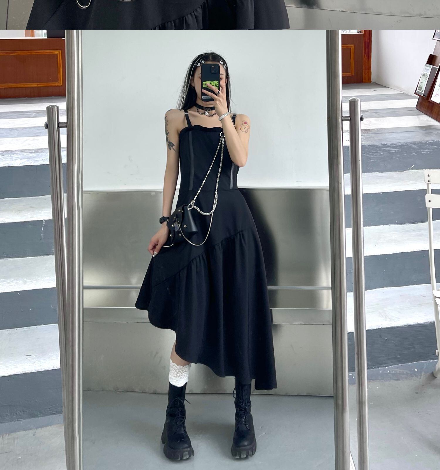 ワンピースレディース夏服韓国ファッショントレンドダークウェストスカート 夏物 スタイル ウエスト デーモン9365360246