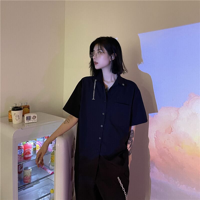 スタイルシャツ レディース夏服トレンドスタンダードブラックルーズカジュアルTシャツ レトロ 原宿 夏物 ボーイズ デーモン1731081020
