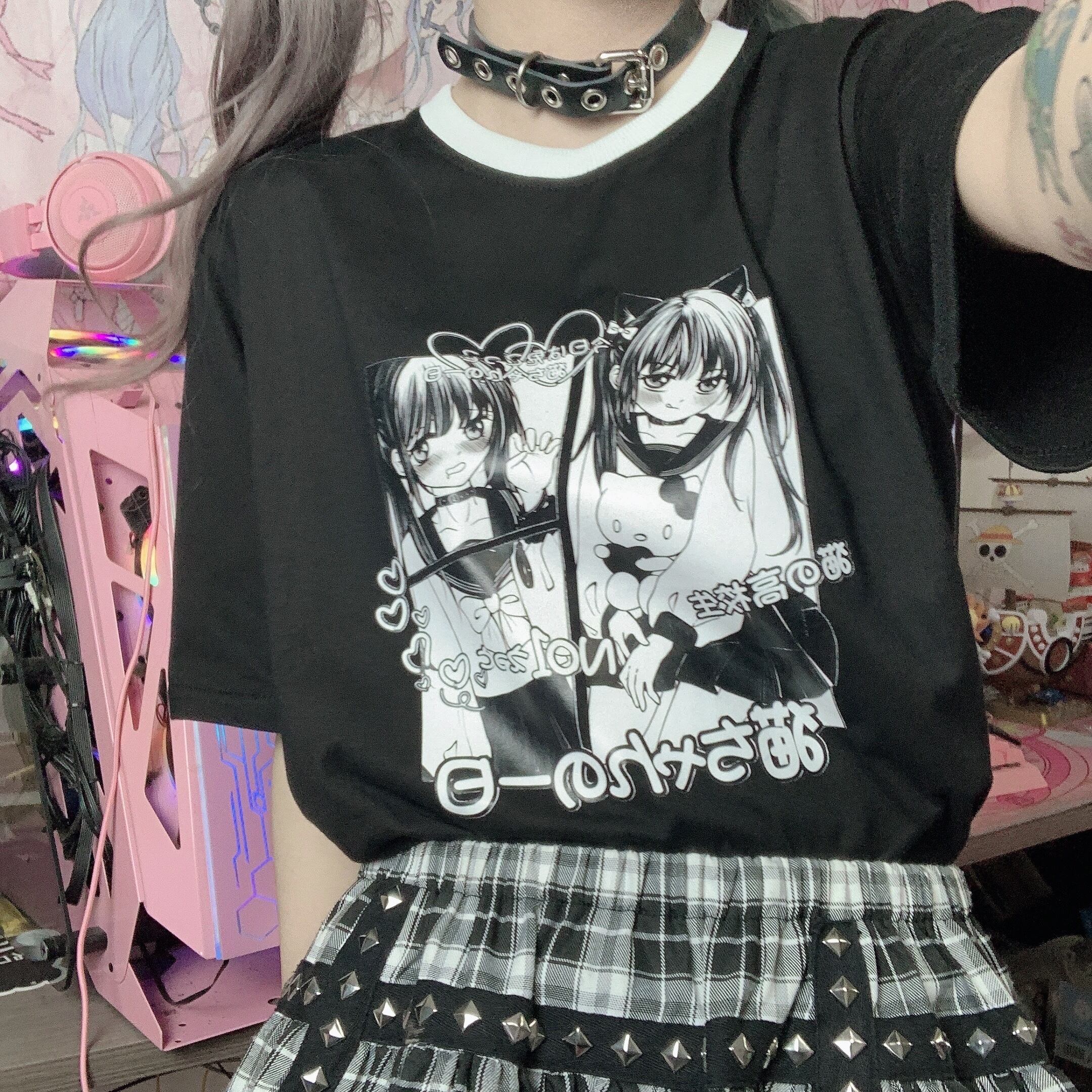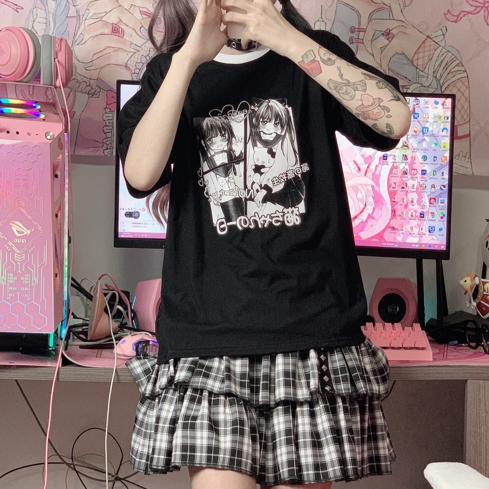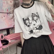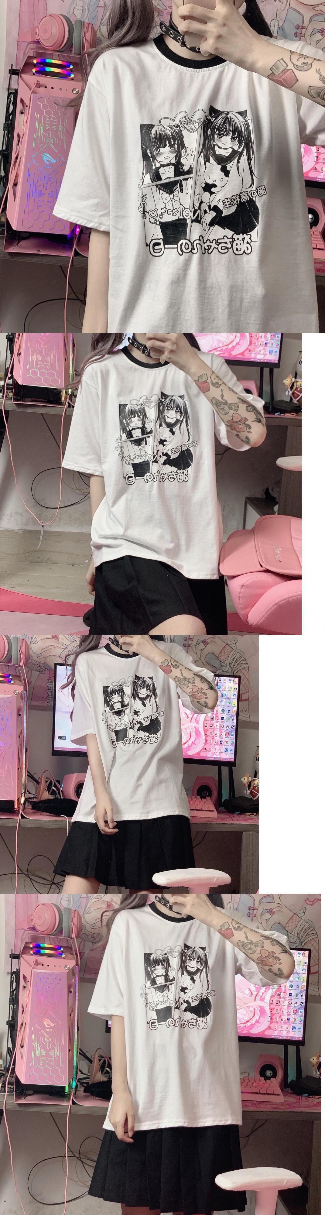 夏服Tシャツレディース韓国ファッショントレンドプリント柄ホワイトルーズラウンドネックトップス 夏物 Oネック スタイル デーモン66946030311