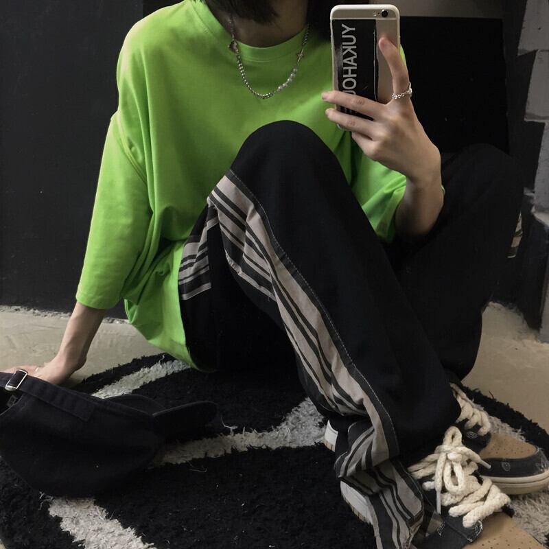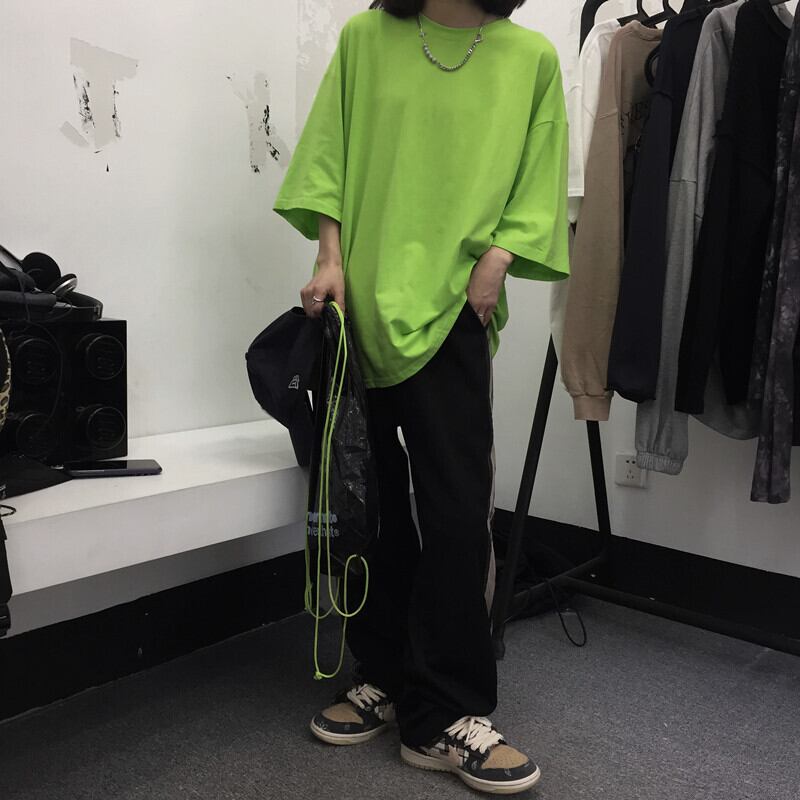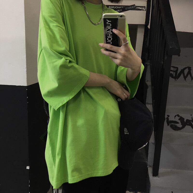 夏服トップス 韓国ファッショントレンドマスタードグリーンルーズラウンドネックTシャツ 夏物 Oネック スタイル デーモン63888939702