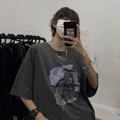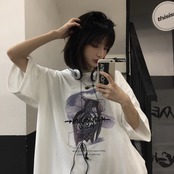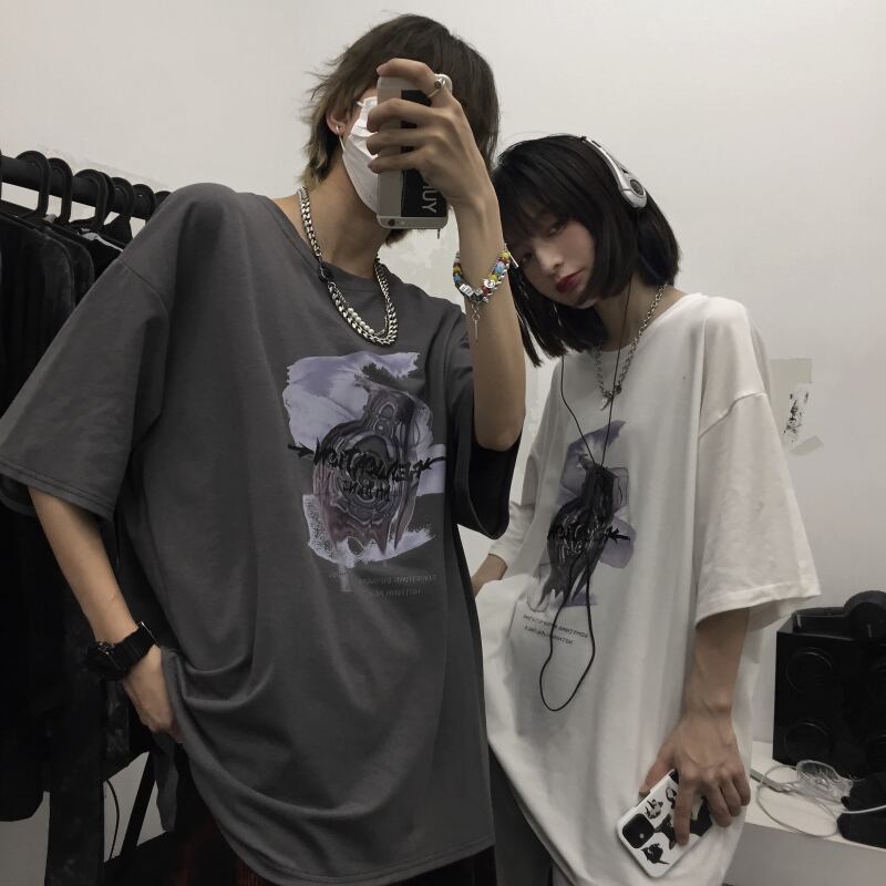 Tシャツレディース夏服韓国ファッショントレンドスタイルダークプリントルーズトップス 原宿 夏物 ボーイズ デーモン98285968331