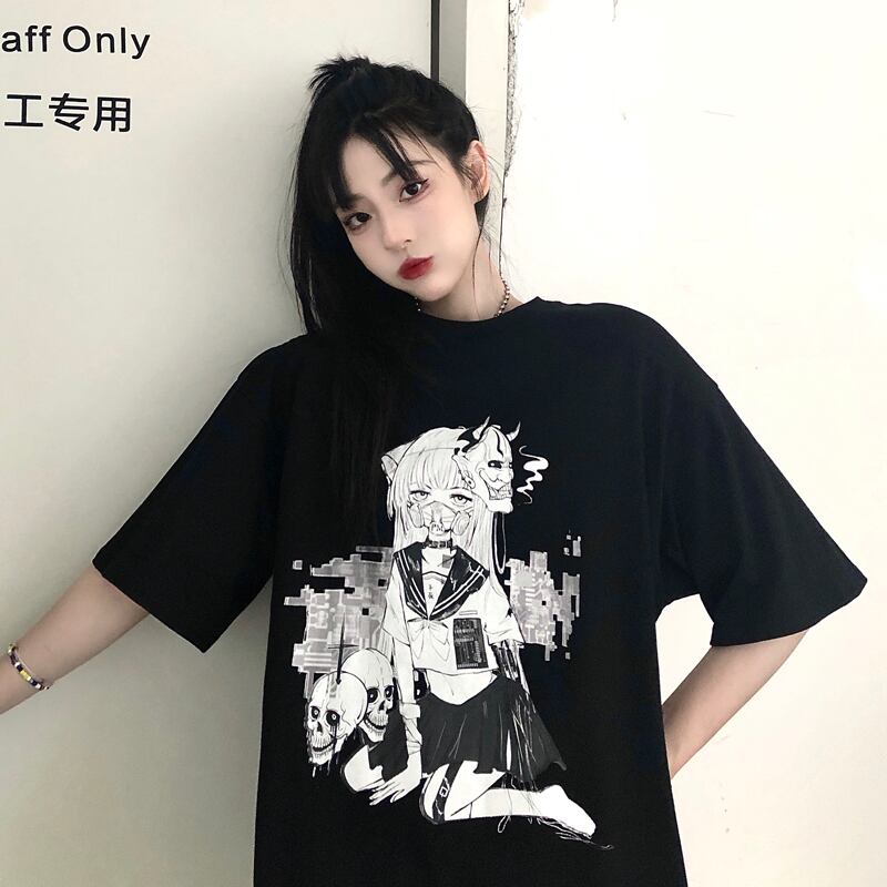 Tシャツトップス 夏服韓国ファッショントレンドダークプリントルーズラウンドネック 夏物 Oネック スタイル デーモン56170170279
