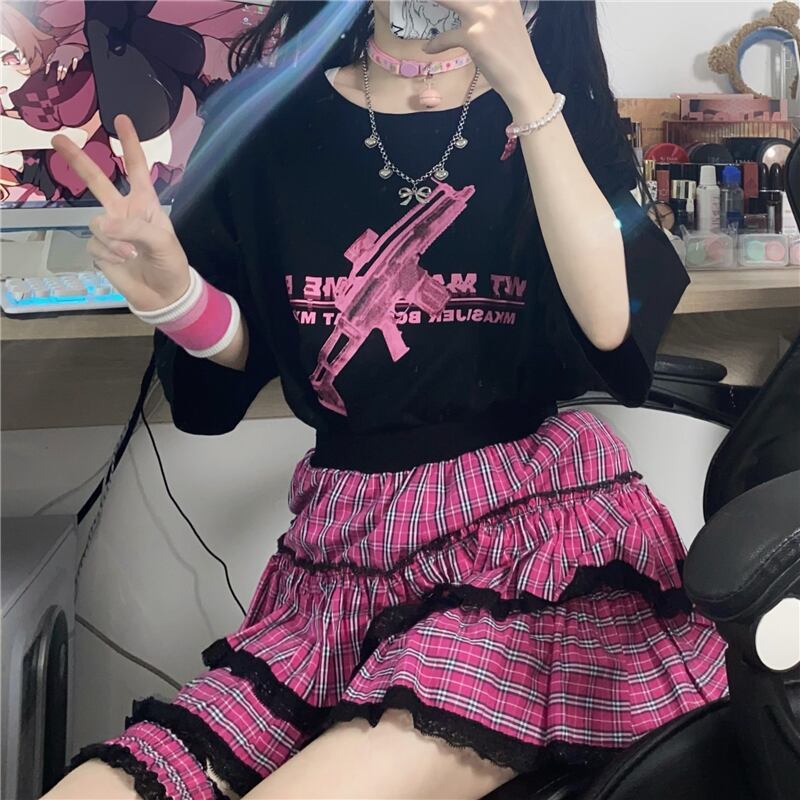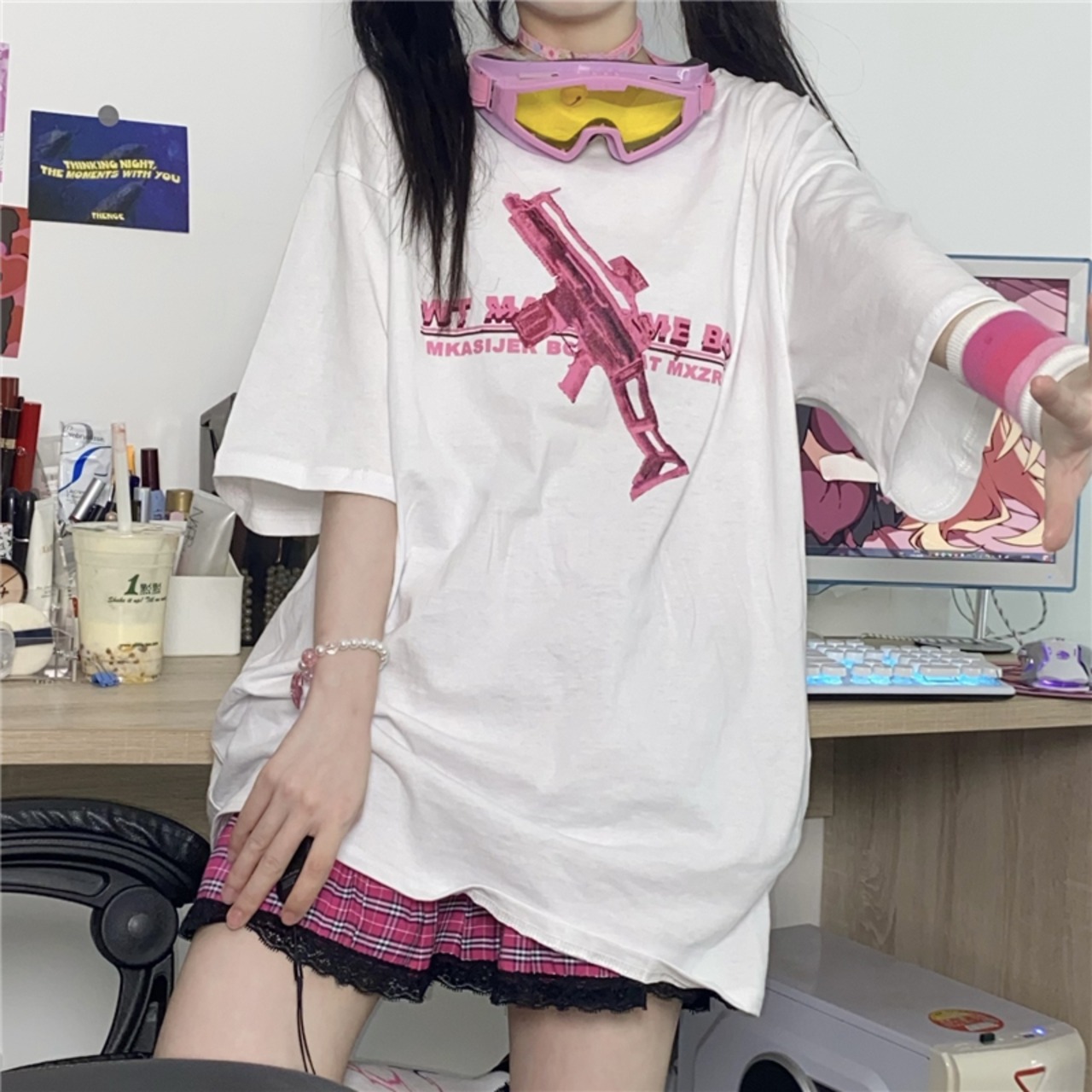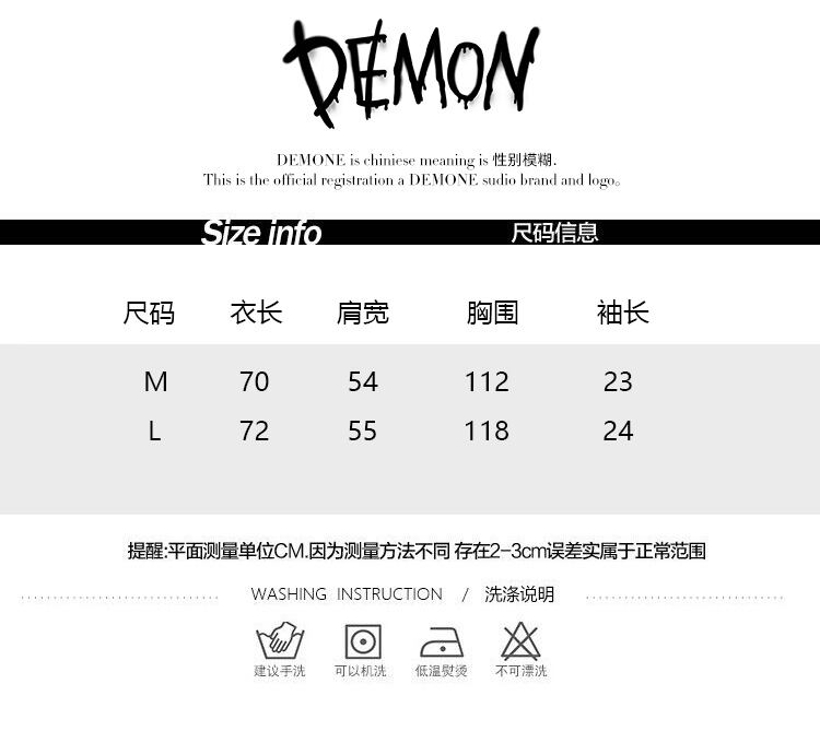 ブラックTシャツレディース夏服韓国ファッショントレンドスタイルプリントルーズトップス 原宿 夏物 ボーイズ デーモン22120393309