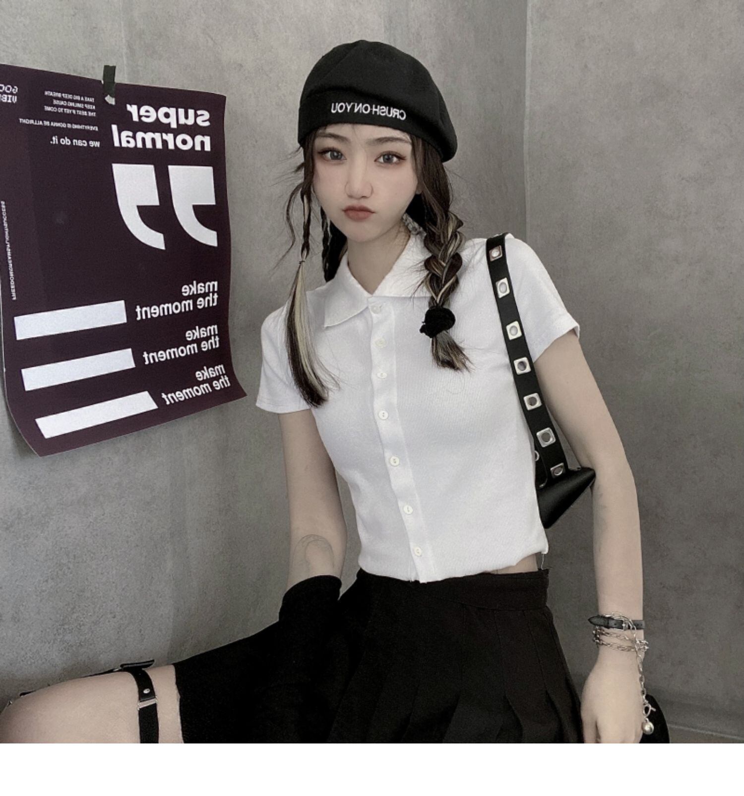 ホワイトTシャツレディース夏服韓国ファッショントレンドショートスリムカラートップス 夏物 スタイル デーモン16666719374