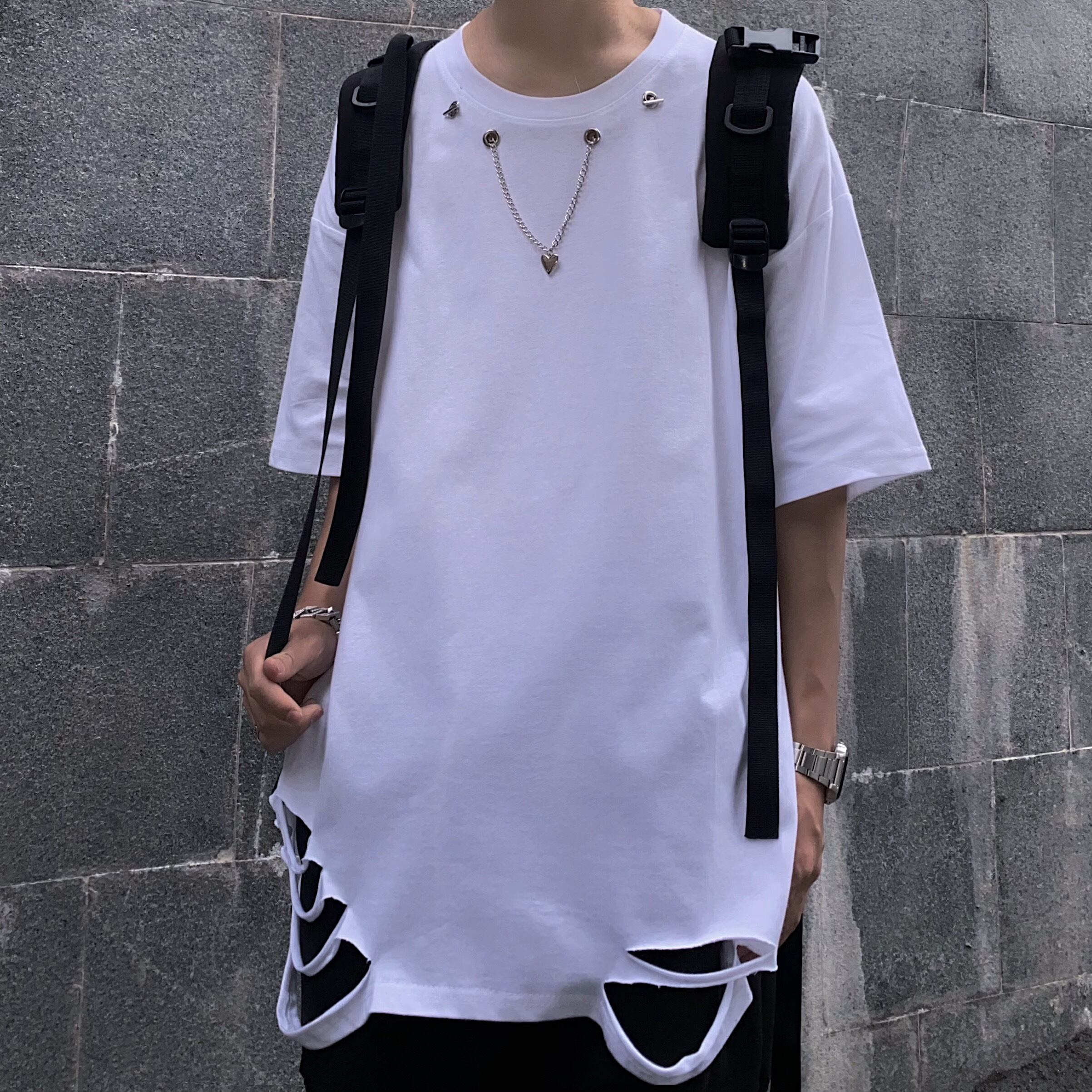スタイルTシャツレディース夏服韓国ファッショントレンドダークチェーン ルーズトップス 原宿 夏物 ボーイズ デーモン68882142821