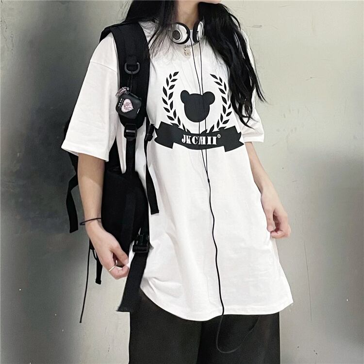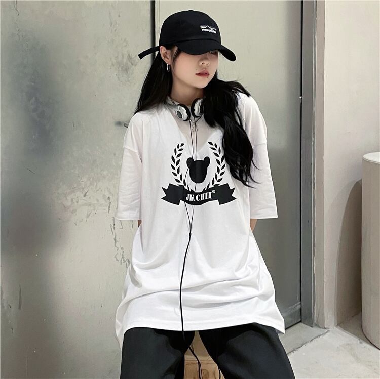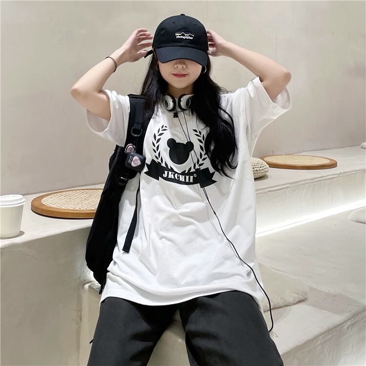 夏服レディース韓国ファッショントレンドスタンダードルーズ薄手プリント柄Tシャツメンズトップス レトロ 夏物 CHIL15674262107