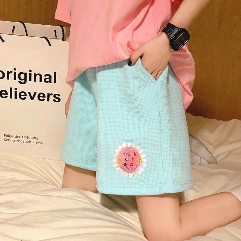 ショーツ レディース夏服トレンドスタンダード刺繍パンツ ルーズ薄手 レトロ 夏物 ボーイズ デーモン90845040862