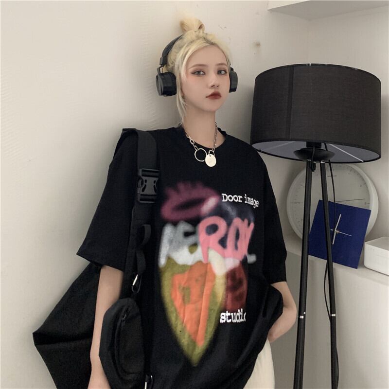 Tシャツ夏服レディース韓国ファッショントレンドプリントルーズトップス 夏物 ボーイズ スタイル デーモン12200379191