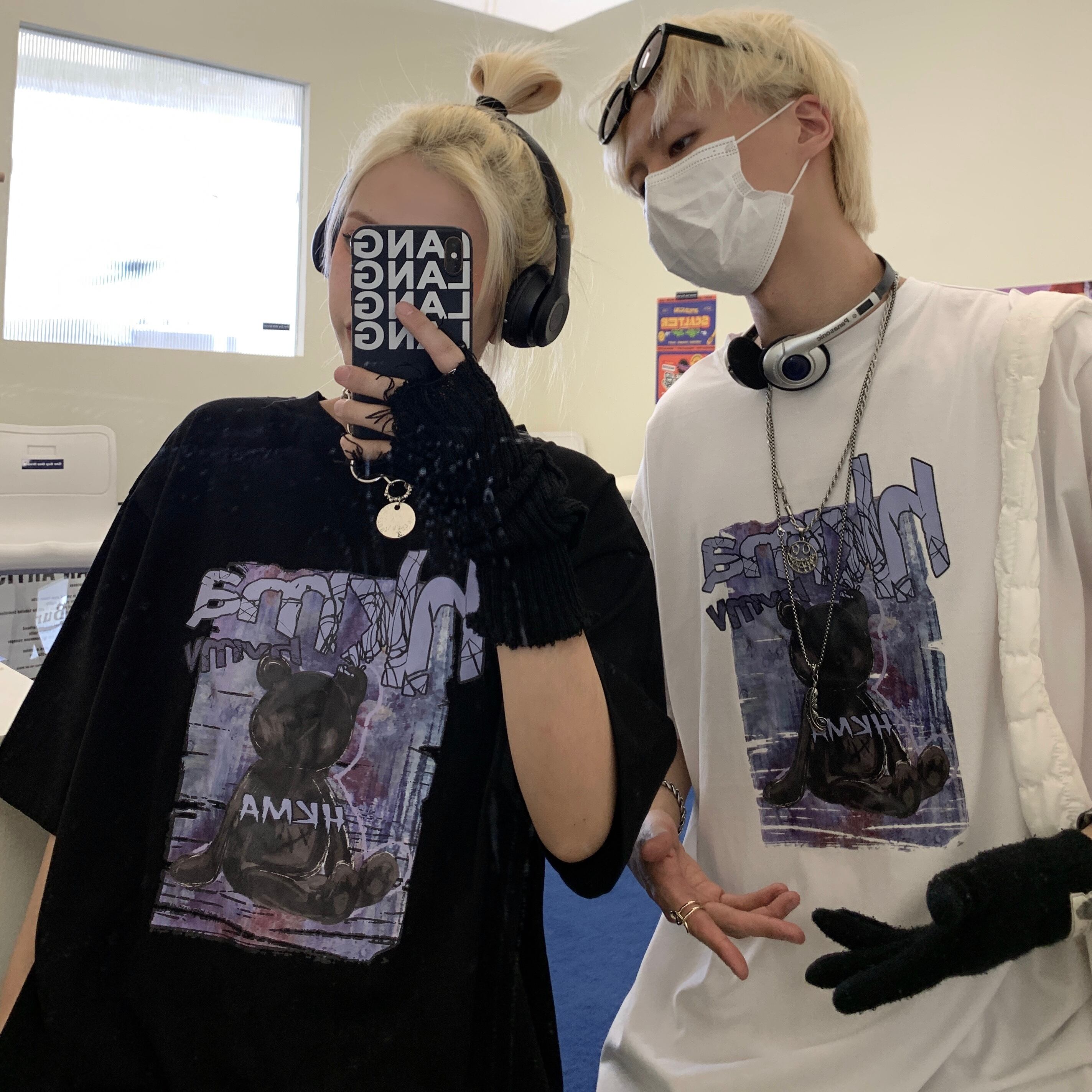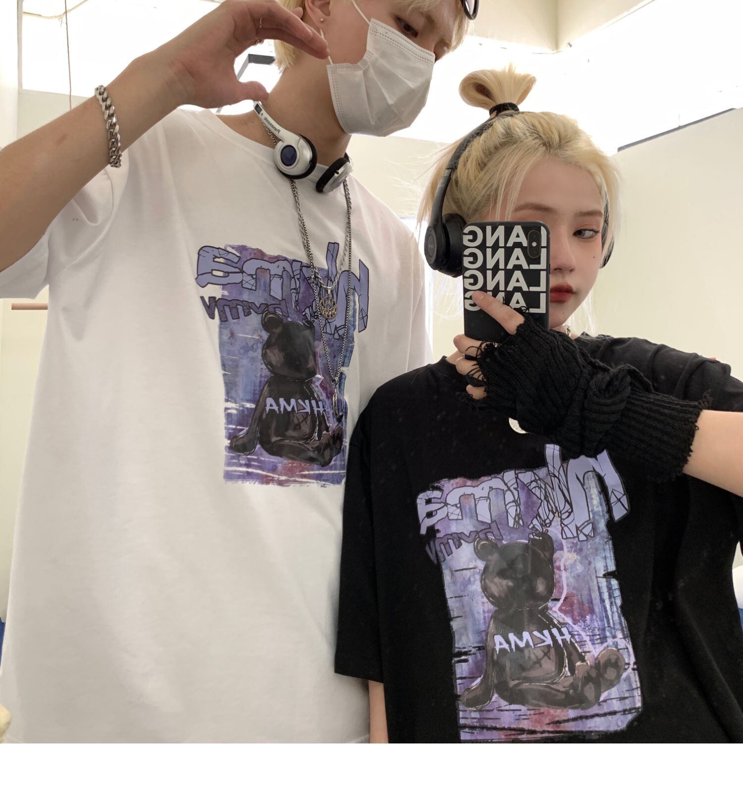 スタイルTシャツレディース夏服韓国ファッショントレンドダークプリント柄ルーズトップス 原宿 夏物 デーモン97940890668
