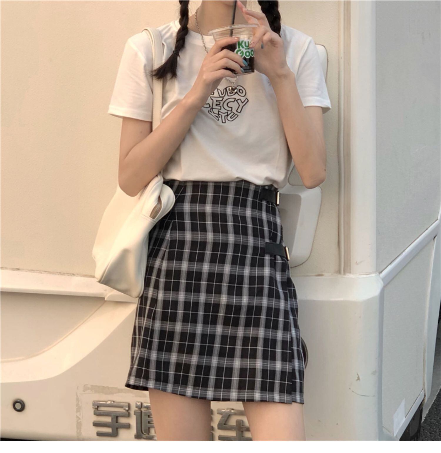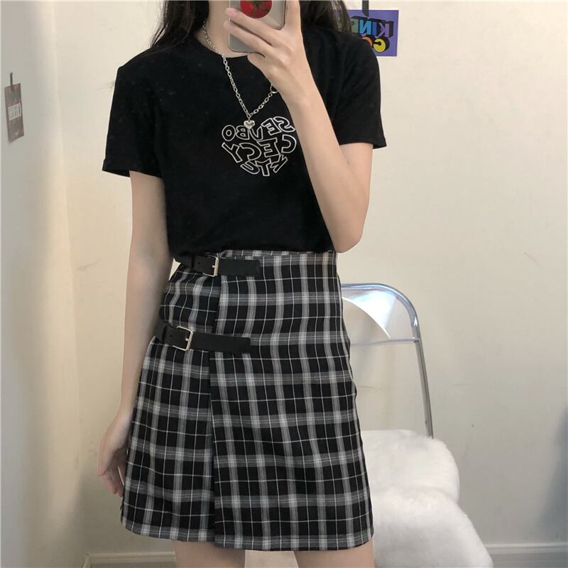 スカート レディース夏服スタイル韓国ファッションスタンダード格子柄ショートTシャツ レトロ 夏物 ボーイズ デーモン69453080650