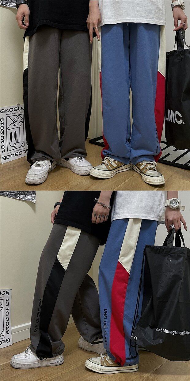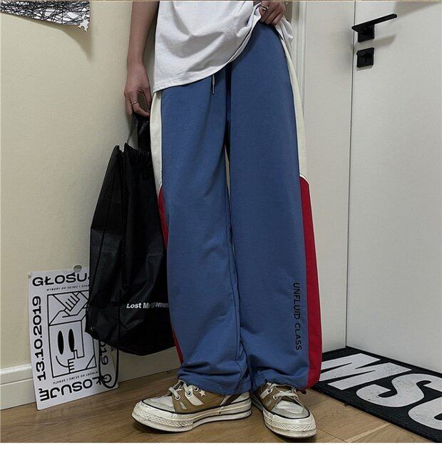 ワイドレッグ夏服トレンドレギンス パンツ ハイウェストウェストルーズカジュアルスリム 原宿 夏物 ワイドパンツ ステッチ ボーイズ ウエスト デーモン94496387652