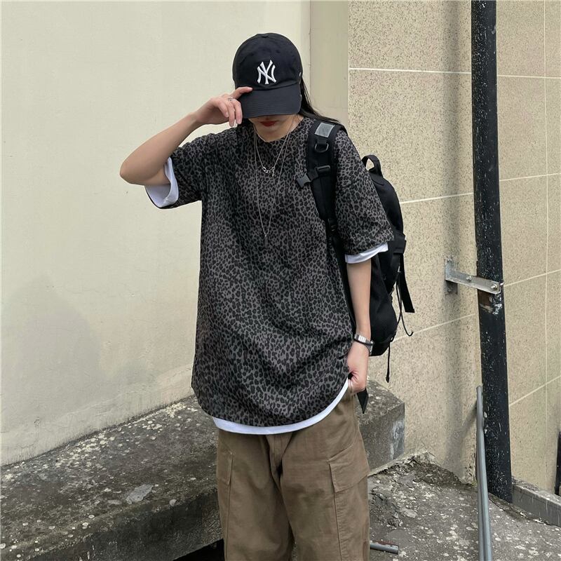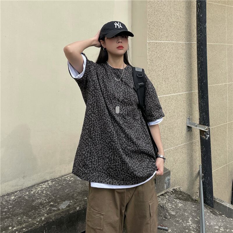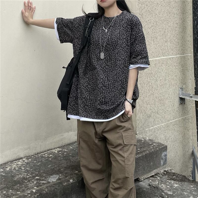Tシャツレディース夏服韓国ファッショントレンドスタイルレオパードプリント柄ルーズラウンドネックトップス 原宿 夏物 Oネック ボーイズ デーモン83430626909
