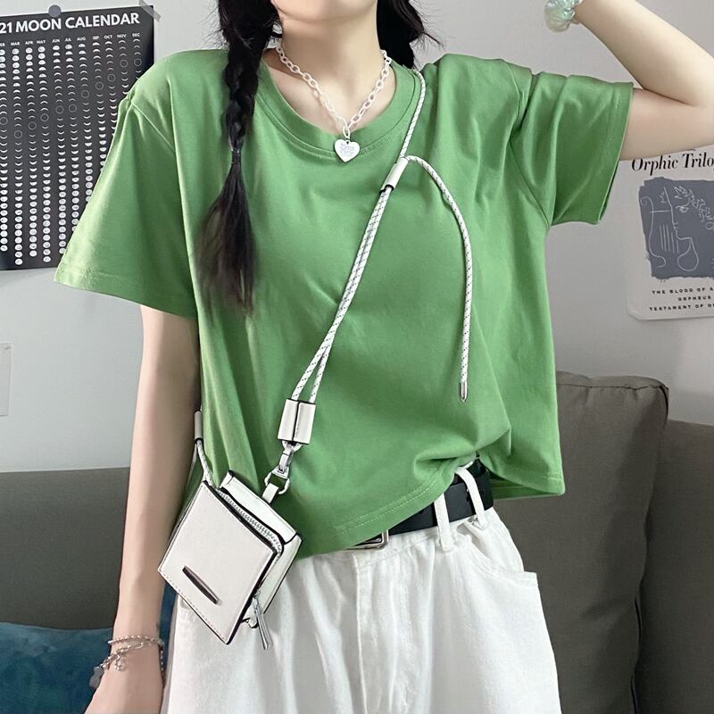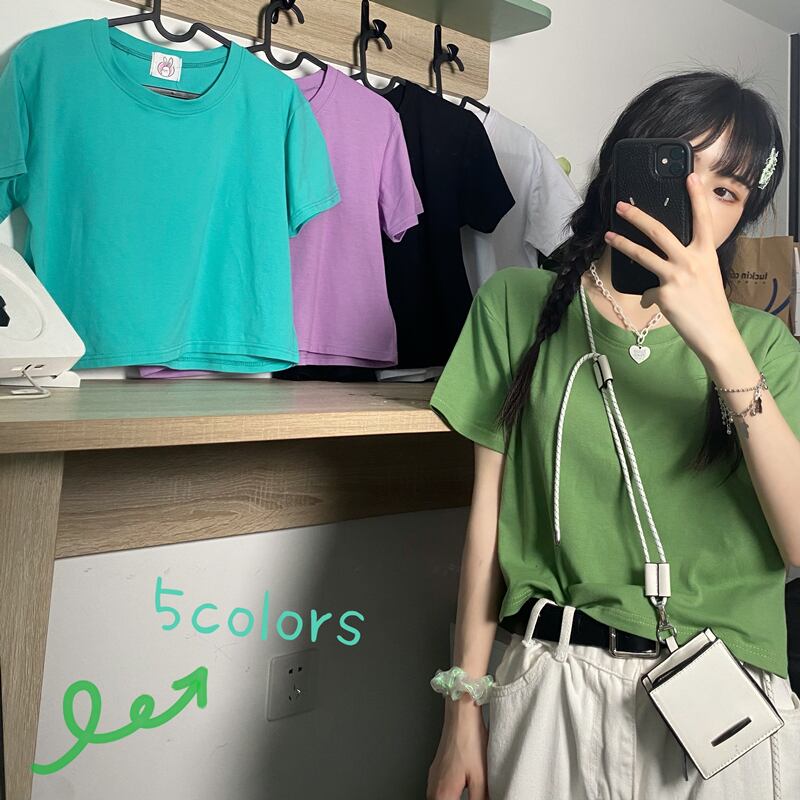 ウェストトップス スプリング夏服ショートクロップドソリッド カラーTシャツトレンド 春物 夏物 ソリッドカラー ウエスト CHIL72413767473