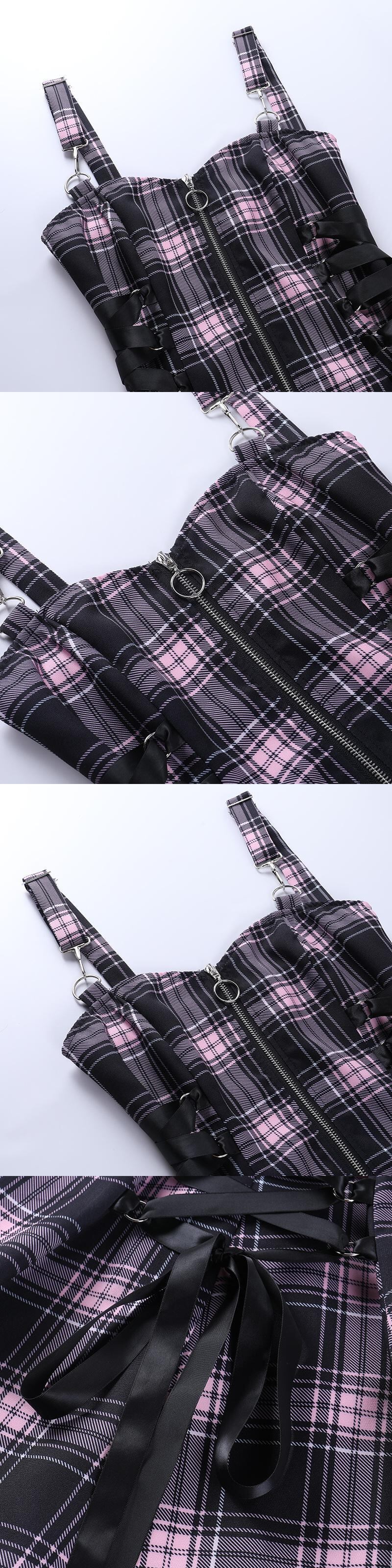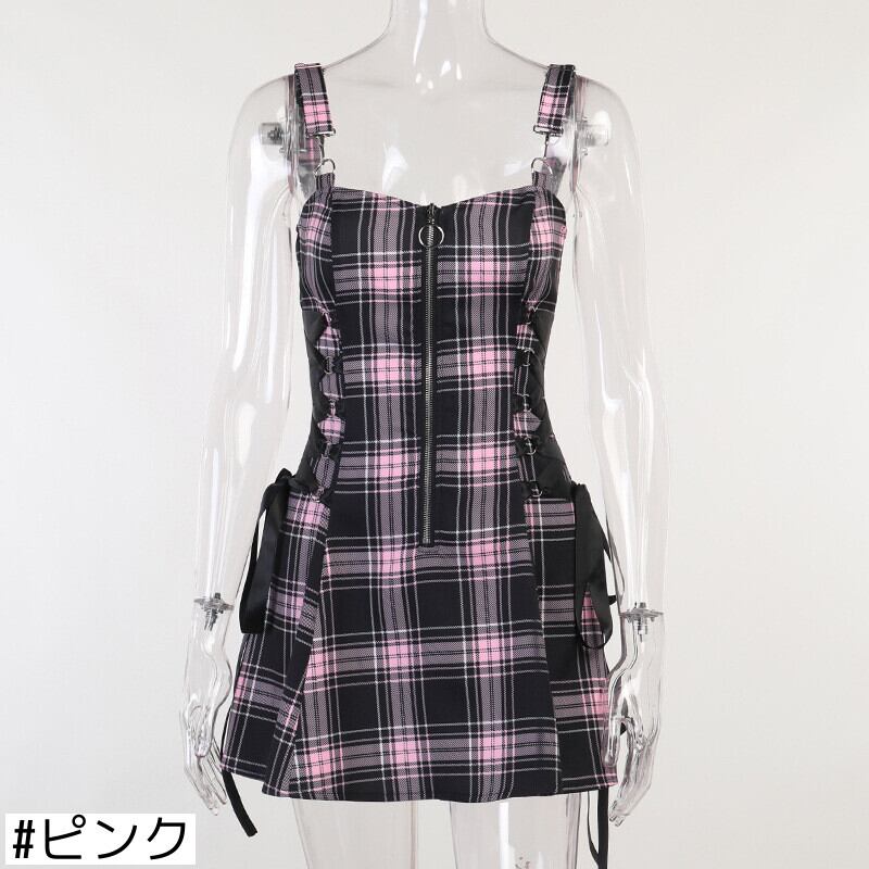 格子柄ギャザージッパーワンピース夏服 大人ガーリー スウィート キュート カジュアル 夏物 YU92610125429