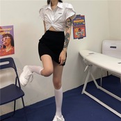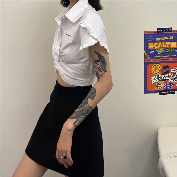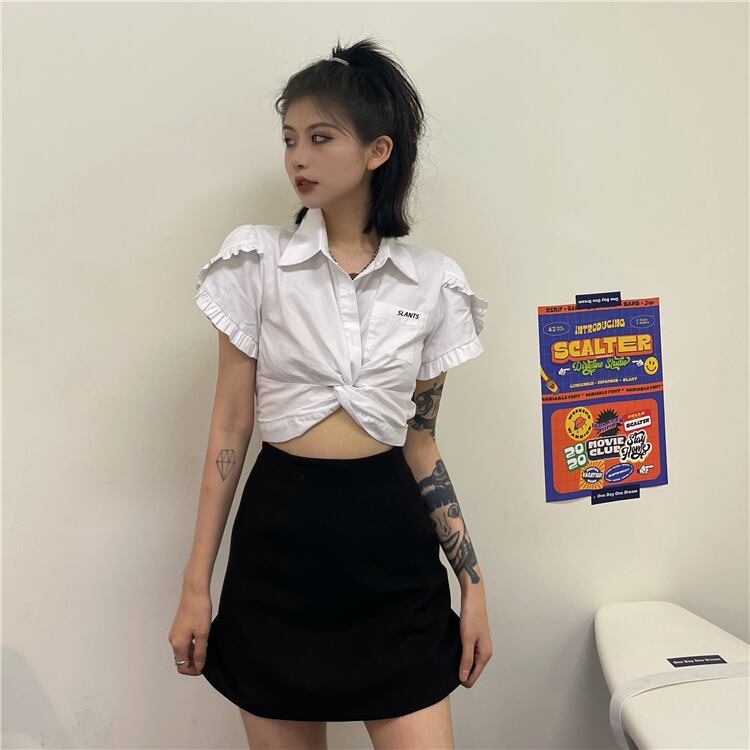 ショートシャツ レディース夏服韓国ファッショントレンドハイウェストウェストスリムトップス 夏物 スタイル ウエスト デーモン3147469774