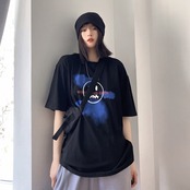 Tシャツレディーススタイルルーズラウンドネックプリントトップス トレンドカジュアル Oネック CHIL63849567377